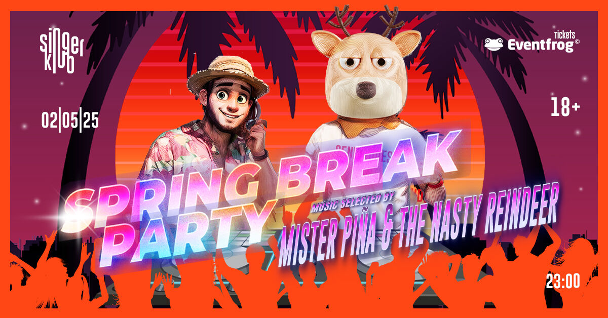 spring break party! nicht in miami, ibiza oder palm springs,-sondern bei uns im singerklub. eine nacht lang bringen die dj's mister piña und nasty reindeer die tanzfläche zum brennen, so dass der sommer defintiv kommen kann, bis das letzte eis abschmilzt und der sommer sich ordentlich präsentieren kann! gepaart mit den besten beats und hits die ganze nacht lang, eurer partystimmung und der einten oder anderen sommerlichen überrschung, defintiv ein event, den man sich nicht entgehen lassen kann!