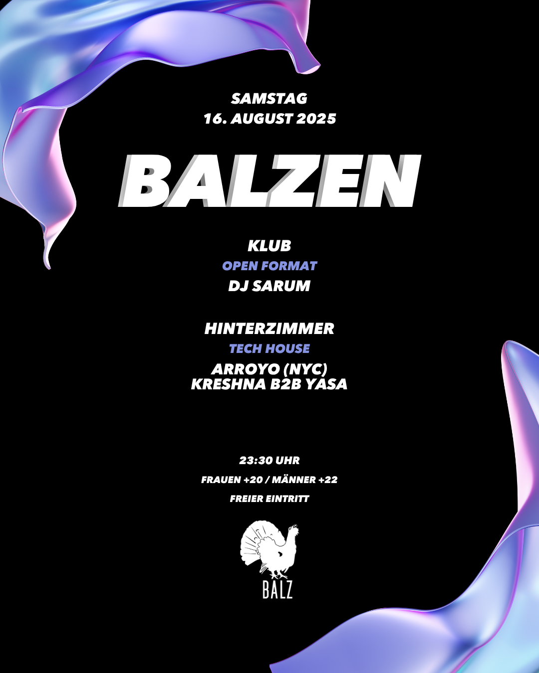 Samstag, 16. August 2025 von 23:30 - 05:00 Uhr @ Balz Klub