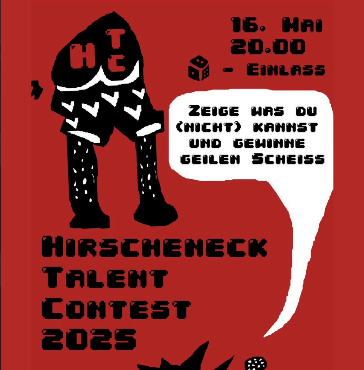 Das Hirschi gibt dir die Chance, der grösste Rockstar der Stadt zu werden. Melde dich vorher an unter hirschicontest@gmx.ch oder komm spontan vorbei und zeig dem Publikum, was du drauf hast. Egal um welches Talent es sich dabei handelt... Das Publikum stimmt ab und entscheidet, wer den begehrten Hirschi-Preis erhält: einen personalisierten Penne-Pass und einen Monat gratis Penne im Hirschi.