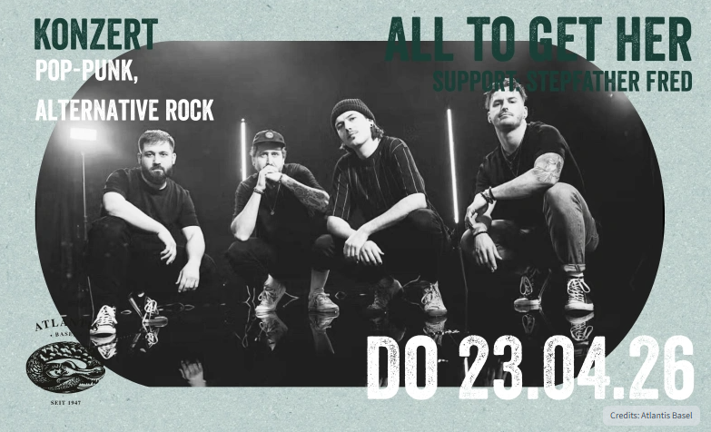 Die Band feierte Meilensteine mit Auftritten an grossen Rockfestivals wie dem Greenfield Festival und energiegeladenen Shows in Deutschland und England und festigte damit ihren Ruf als Pflicht-Act. Einer ihrer jüngsten Songs landete zudem als Nummer-eins-Track auf dem Cover der Spotify-Playlist «Rock Rotation» (über 332’000 Follower). Ein Beleg für die wachsende Reichweite und eine stetig wachsende Fangemeinde. Mit neuer Musik wird All To Get Her auch 2026 weiter Grenzen verschieben und unvergessliche Live-Momente schaffen