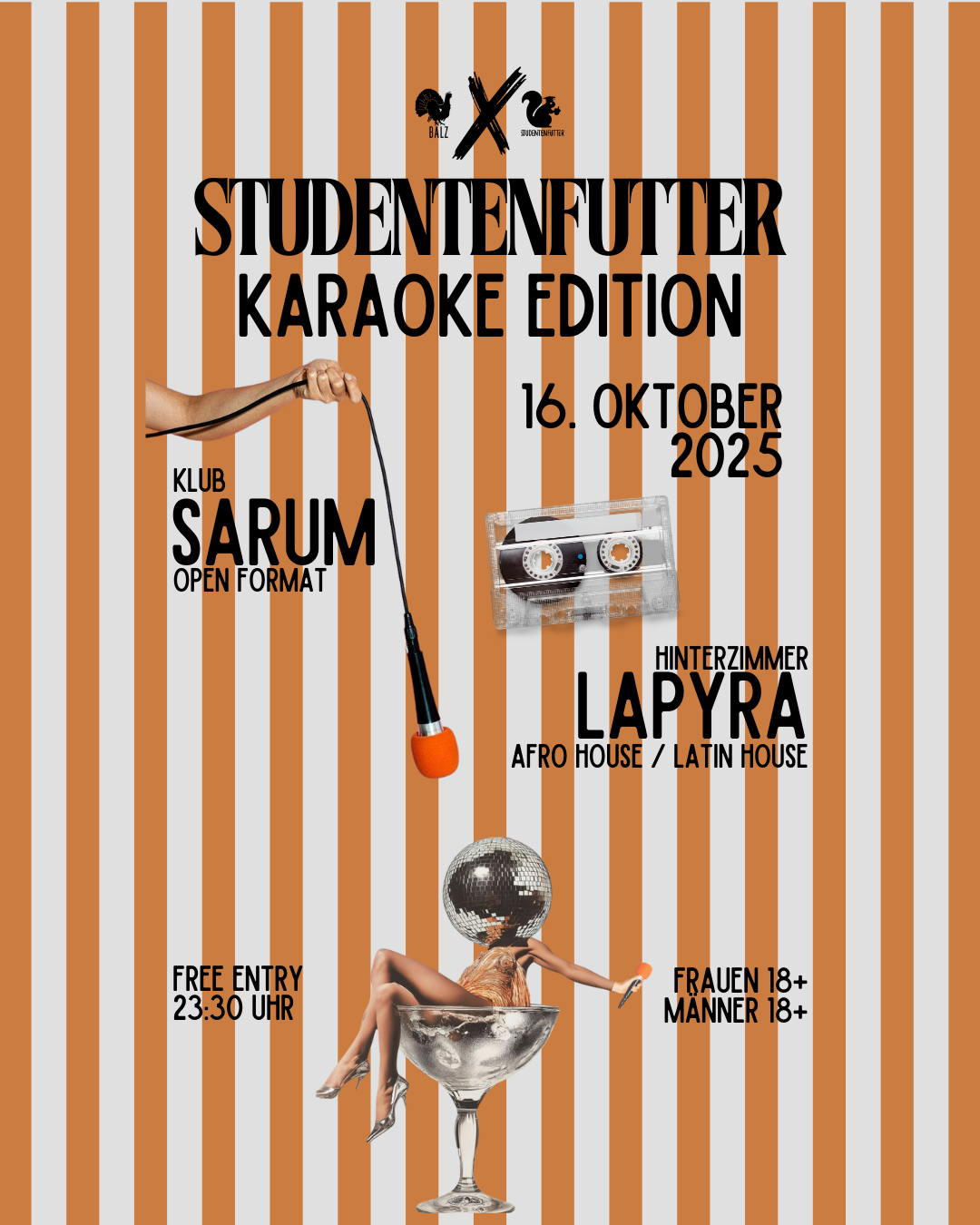 Dieses Mal heisst es nicht nur tanzen, sondern auch Mikro schnappen und abliefern! Bei der Studentenfutter Karaoke Edition wird der Balz Klub zur grossen Bühne. Ob Chart-Hit, Klassiker oder Guilty Pleasure – ihr bestimmt den Sound des Abends.