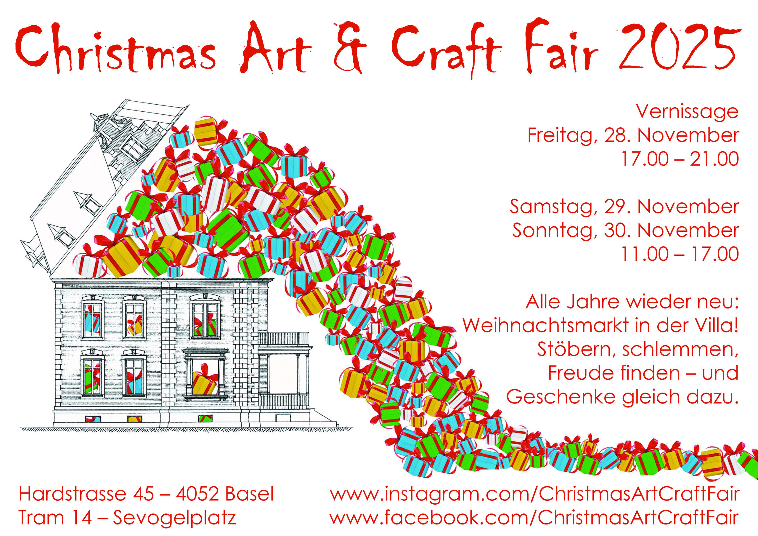 Zum 13. Mal öffnet die Villa an der Hardstrasse 45 in Basel ihre Türen für die stimmungsvolle Christmas Arts & Craft Fair. Am 1. Advent Wochenende verwandelt sich das historische Haus in ein festliches Weihnachtsparadies – ein Ort, an dem sich Menschen begegnen, inspirieren lassen und die Adventszeit gemeinsam feiern. Die Besucherinnen und Besucher erwartet ein vielfältiges Angebot an handgemachten Geschenken, Kunstwerken und Kunsthandwerk aus der Region.