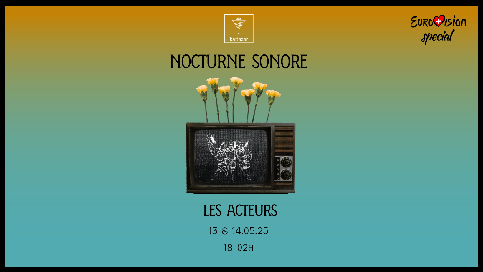 Die DJs Les Acteurs bringen euch bei Nocturne Sonore am 13. und 14. Mai von 18:00 bis 02:00 Uhr elektronische Vibes unter freiem Himmel – perfekt zum Tanzen, Chillen und Geniessen.