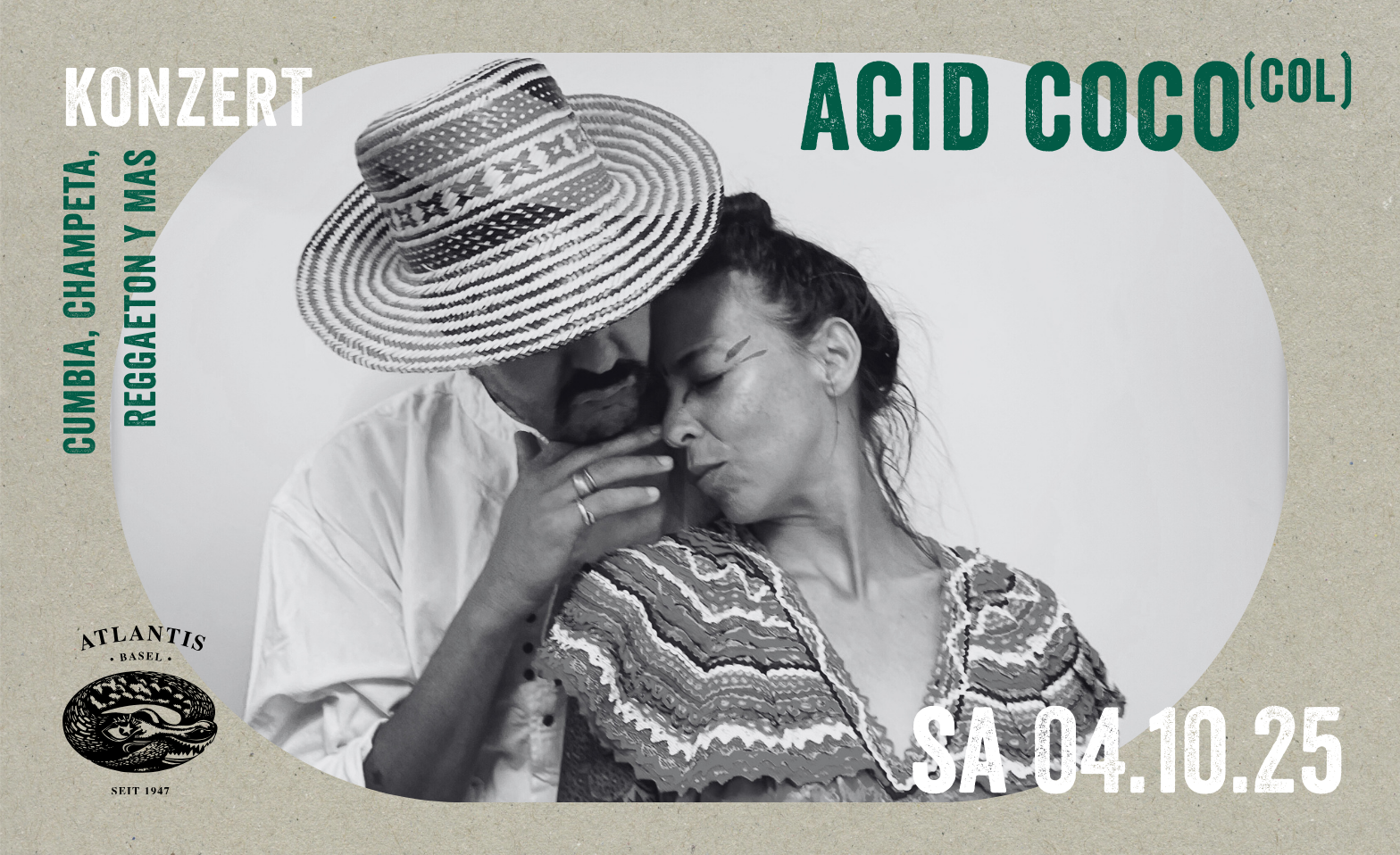Acid Coco ist ein kolumbianisches Duo, durch dessen Adern der Pazifik, die Karibik, die Anden, der Dschungel und mehr fließen. Ihr Debütalbum „Mucho Gusto“ erschien 2020 und brachte ein musikalisches Projekt hervor, das in unwiderstehlichen costero-Rhythmen (Küstenrhythmen) verwurzelt ist – aber im Club aufgewachsen ist.