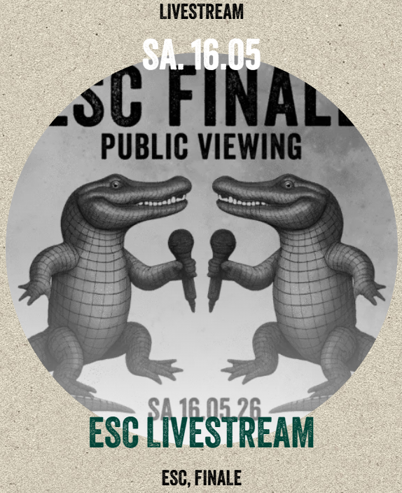Kommt vorbei, geniesst den ESC zusammen mit uns, erlebt grosse Stimmen, schräge Outfits, emotionale Momente und jede Menge Gesprächsstoff. Ob Hardcore-ESC-Fan oder einfach dabei fürs gemeinsame Erlebnis – dieser Abend gehört uns allen.
