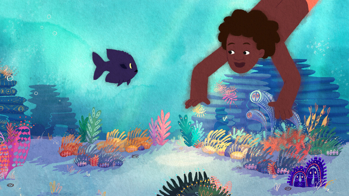 Eine animierte Legende aus Papua-Neuguinea über den Ursprung der bunten Fische der Korallenriffe und ihre Verbindung zu den Bewohner:innen einer kleinen Insel.