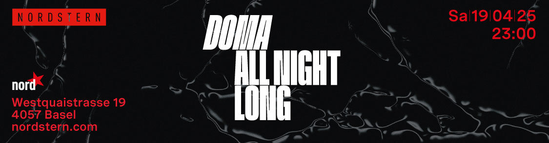 Nordstern's walls vibrate with a familiar energy: Doma's back! Longtime family, legendary closer, and now, a rising force with a string of fire releases. He knows this booth like the back of his hand and he's claiming it for an All Night Long takeover. Expect relentless, expect sweat, expect a masterclass in reading the room – and then setting it on fire.
