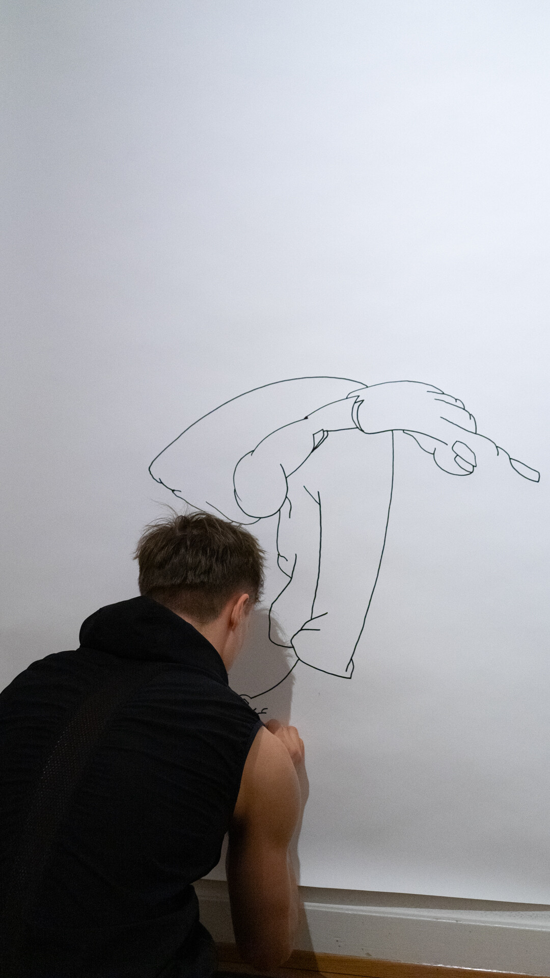 Im Mai wird das Artstübli – Kunst & Kultur zum temporären Atelier des Basler Künstlers Timo Paris. Während seines Aufenthalts arbeitet Paris täglich vor Ort an einer grossformatigen Zeichnung im Massstab des Ausstellungsraums und öffnet seinen Arbeitsprozess für Besucher. Der Kunstraum verwandelt sich damit über mehrere Wochen hinweg in ein lebendiges Arbeitsumfeld, in dem Zeichnung als zeitbasierte und körperliche Praxis erfahrbar wird. Die Arbeit entsteht im Zusammenhang mit seinem langfristigen Projekt The Living Line. Darin versteht Paris Zeichnung als Bewegung, Spur und soziale Form. Ausgangspunkt ist seine künstlerische Praxis zwischen Breaking, performativer Forschung und Zeichnung. Körperliche Bewegung wird zur Linie übersetzt und Linien wiederum werden zu Ausgangspunkten neuer Begegnungen, Kooperationen und Transformationen. Zeichnung erscheint hier als offener Prozess, der sich über Orte, Menschen und Zeit hinweg weiterentwickelt. Während seines Aufenthalts ist Timo Paris an den meisten Tagen anwesend. Besucher sind eingeladen, den Entstehungsprozess der Arbeit mitzuerleben und Einblick in seine Arbeitsweise zu erhalten. Ein zentraler Bestandteil des Projekts sind sogenannte City Drops. Dabei setzt der Künstler kleinere Zeichnungen im öffentlichen Raum aus und bringt sie in Umlauf. Menschen, die diese Arbeiten finden, werden Teil eines wachsenden Netzwerks, das die Zeichnungen weiterträgt, dokumentiert und durch ihre Zusammenführung neue Generationen entstehen lässt. So entfaltet sich The Living Line als kollektiver Prozess innerhalb der urbanen Öffentlichkeit.