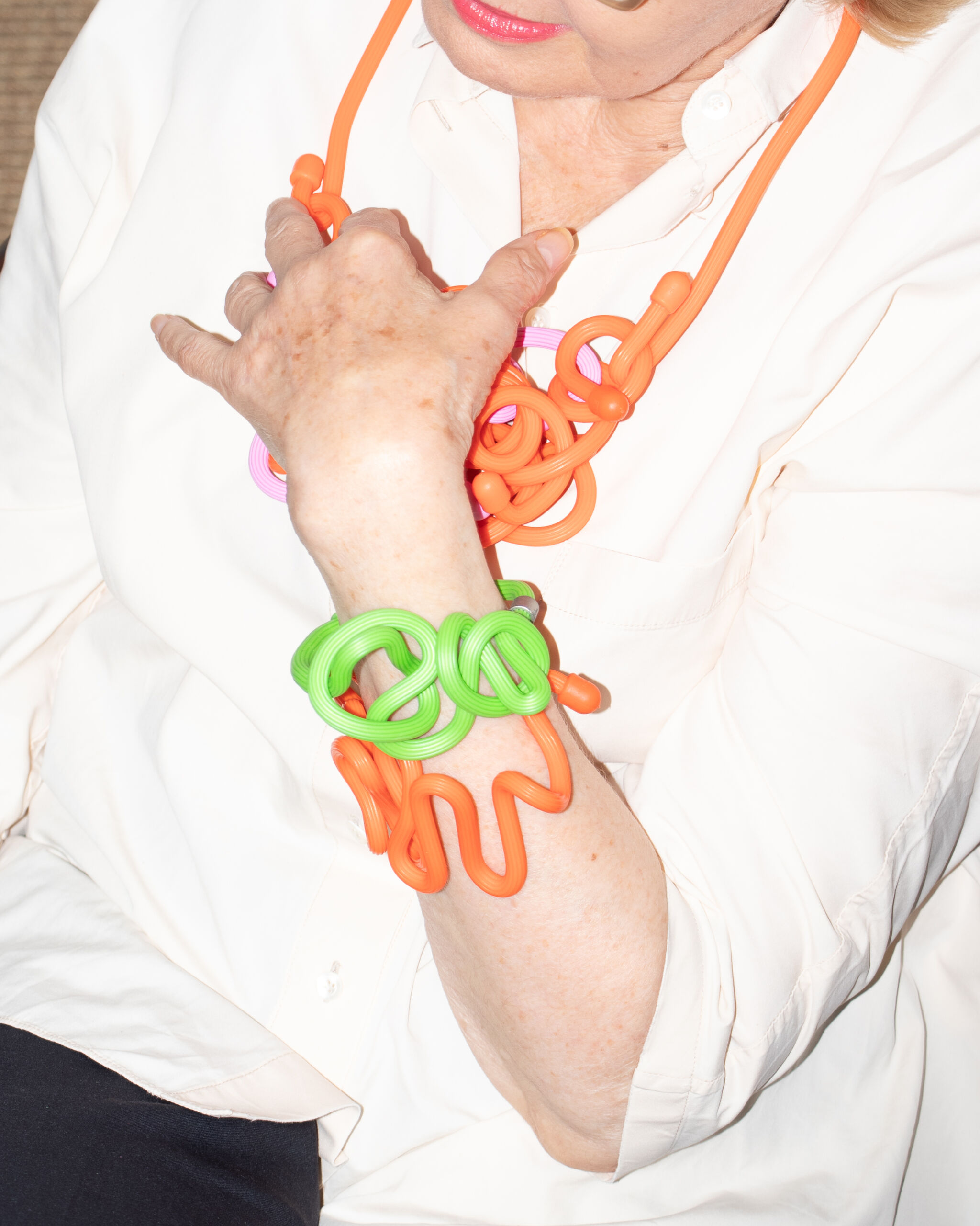 Die Serie von tragbaren Kunstobjekten wurde von der in Zürich ansässigen Architektin und Designerin Nina Baier-Bischofberger entworfen und besteht aus einzigartigen Armbändern und Halsketten. Jedes Objekt ist handgefertigt aus funktionalem TPE-beschichtetem Draht und trägt das Nina B Lives-Herstellerkennzeichen aus 3D-gedrucktem Stahl.
