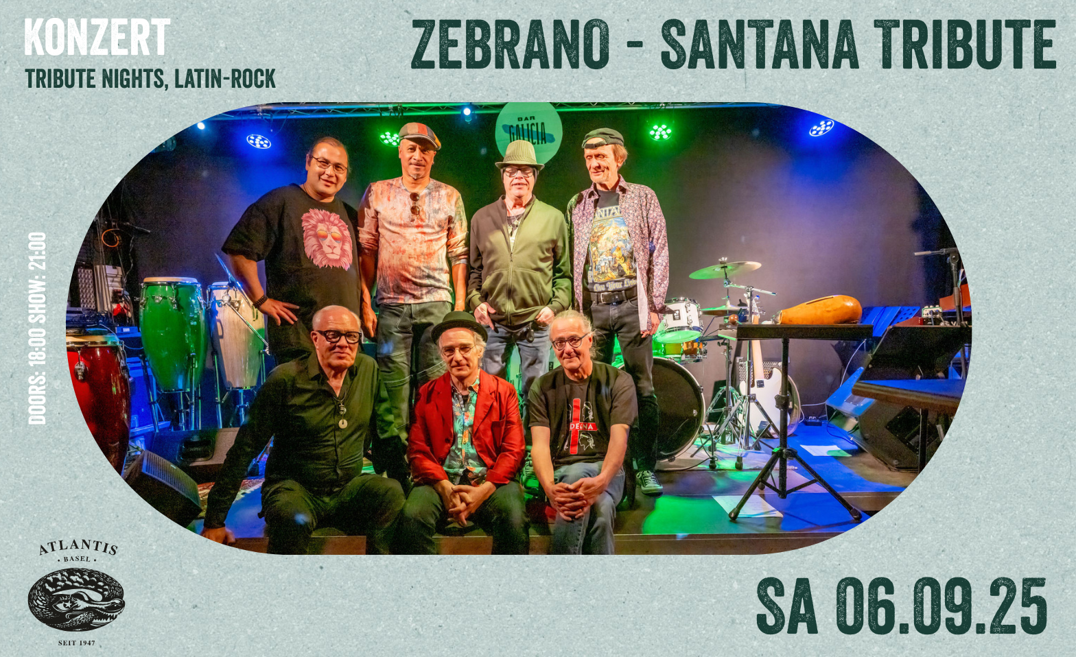 Seit Woodstock 1969 steht der Name Carlos Santana für einen unverwechselbaren Sound: Latin Rock – eine kraftvolle Mischung aus pulsierenden Percussions, virtuosen Gitarren und purer musikalischer Freiheit. Seine Musik hat Generationen geprägt und fasziniert – und am 6. September 2025 bringt die Schweizer Tribute-Band ZEBRANO genau diese pulsierende Energie auf die Bühne des Atlantis Basel.
