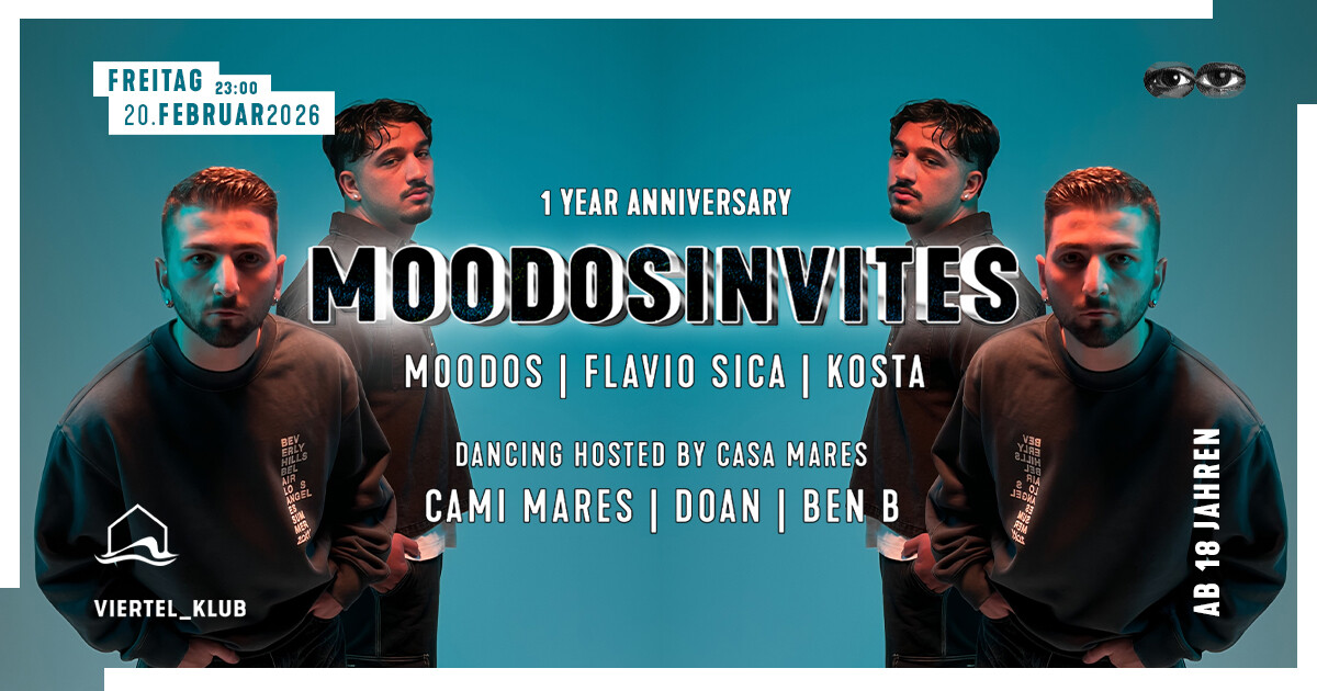Vor einem Jahr präsentierte das junge Basler DJ-Duo MOODOS, bestehend aus Avio und Leo Rustemi, die Premiere ihres eigenen Events "Moodosinvites". Damit sorgten sie wenig überraschend für weitreichendes Entzücken in der lokalen Szene. Nun schreiben die beiden das 4. Kapitel und feiern damit gleich ihren ersten Geburtstag. Wiederum laden sich die beiden Gastgeber, befreundete, lokale Artists ein und übernehmen gemeinsam die musikalische Gestaltung der Nacht. Als Zückerchen öffnen sie zur Jubiläumssause auch noch das Dancing, welches von Casa Mares gehosted wird. Und um dem bisherigen Erfolgsrezept treu zu bleiben, bleibt der Eintritt ab 18 Jahren.