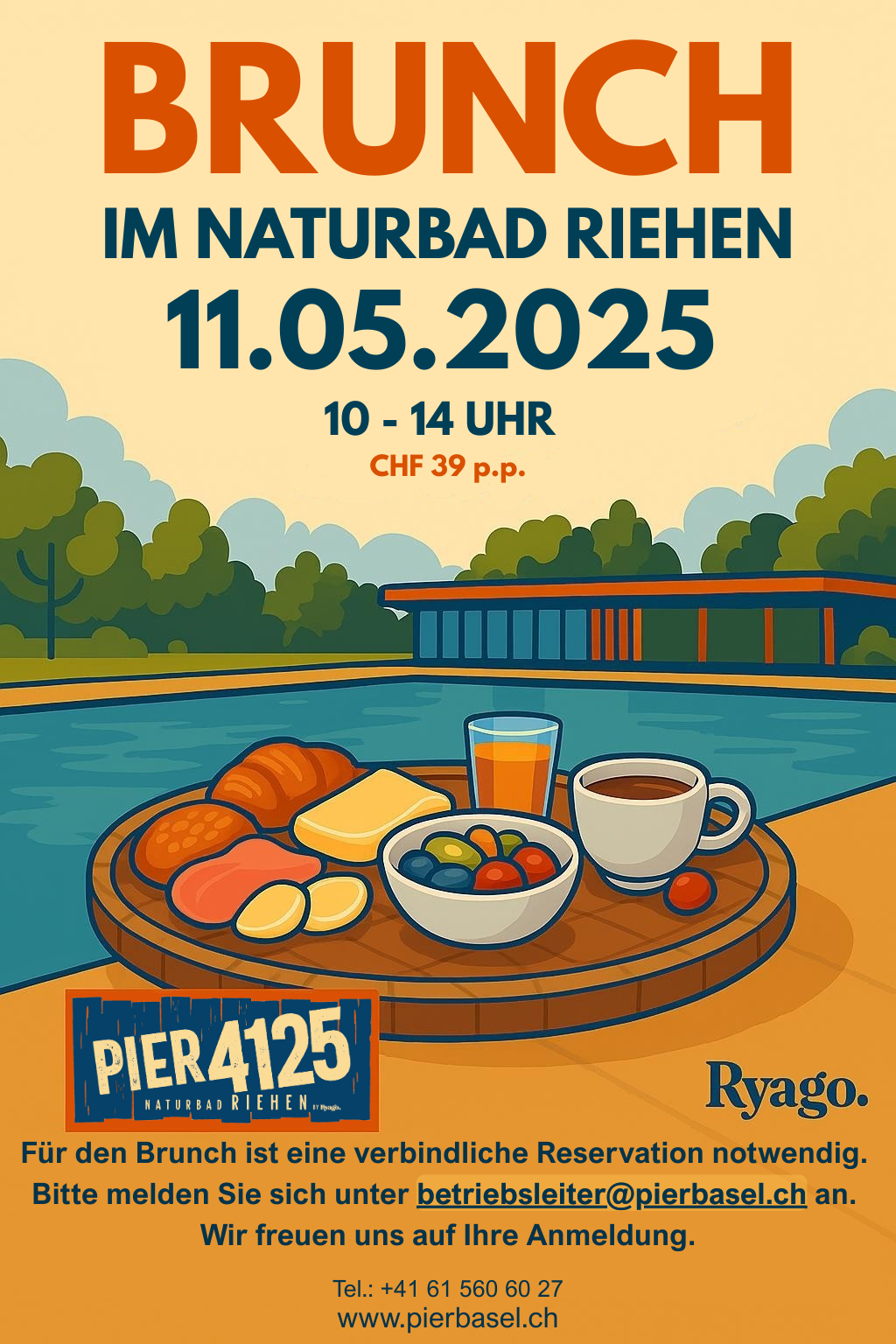 Ob im Rahmen der Eröffnung der PierBäder oder zum Muttertag – geniesse einen fantastischen Brunch mit anschliessendem Sprung ins Wasser.
