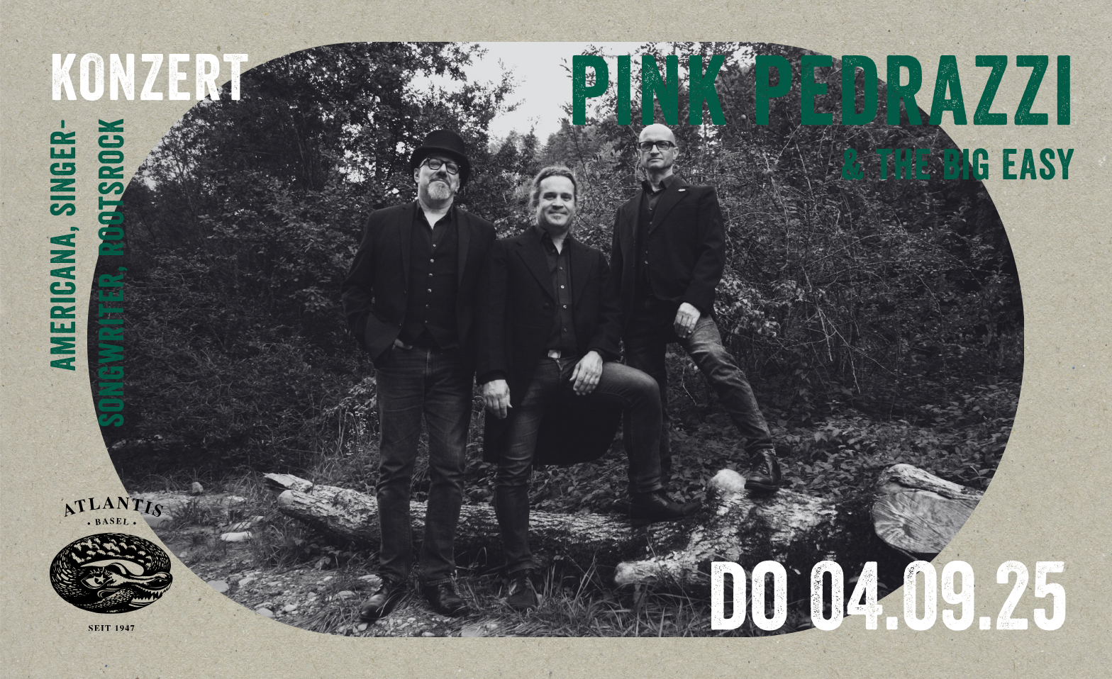 Seine Stimme ist einprägsam und variabel, sicher vom Reibeisen bis in die höchsten Regionen der Kopfstimme. Seine Songs spielt er wahlweise auf der Akustikgitarre oder auf der verstärkten Ukulele. Mit seiner Band «The Big Easy» hat sich Pink Pedrazzi zwei virtuose Musiker mit ins Boot geholt, die sein Songwriting in Perfektion umsetzen: Mike Bischof verleiht mit der E-Gitarre den nötigen Zug nach vorne. Rhythmisch getragen von den Uhrwerk-Drums von Herbie Bach. Beide sind auch für den mehrstimmigen Gesang in manchen Songs verantwortlich. Nichts wirkt gesucht, nichts angestrengt, alles fliesst. Pink Pedrazzi (voc, g, uku), Mike Bischof (g, b, bvoc), Herbie Bach (dr, perc, bvoc)