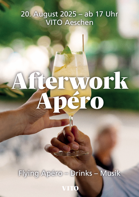 Am 20. August ab 17 Uhr gibt’s im VITO Aeschen VITOcello Spritz, Flying Apéro und Live Musik!
