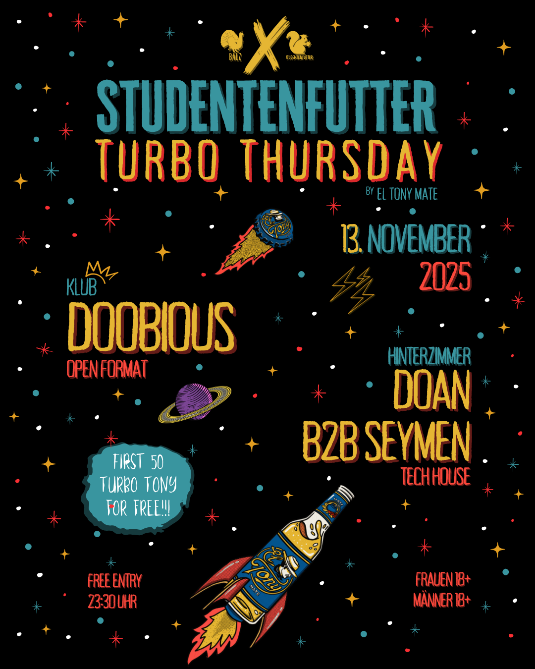 Turbo Thursday bringt frische Beats, wilden Vibe und El Tony Mate direkt auf die Tanzfläche.