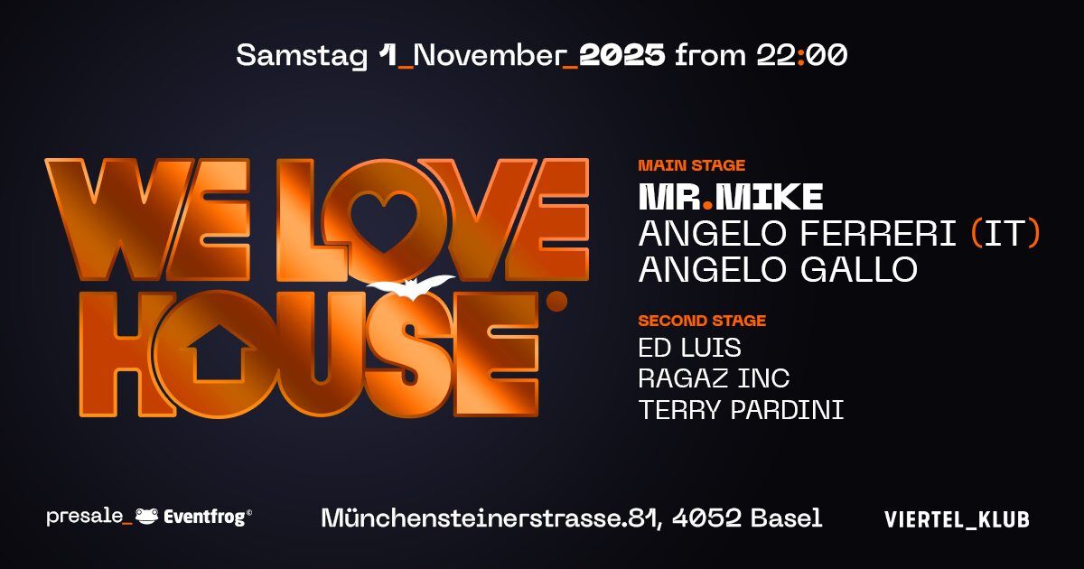 We Love House from the first time at Viertel Klub with Mr. Mike and Special guest from Italy Angelo Ferreri. See you on the Dancefloor Housefreaks!