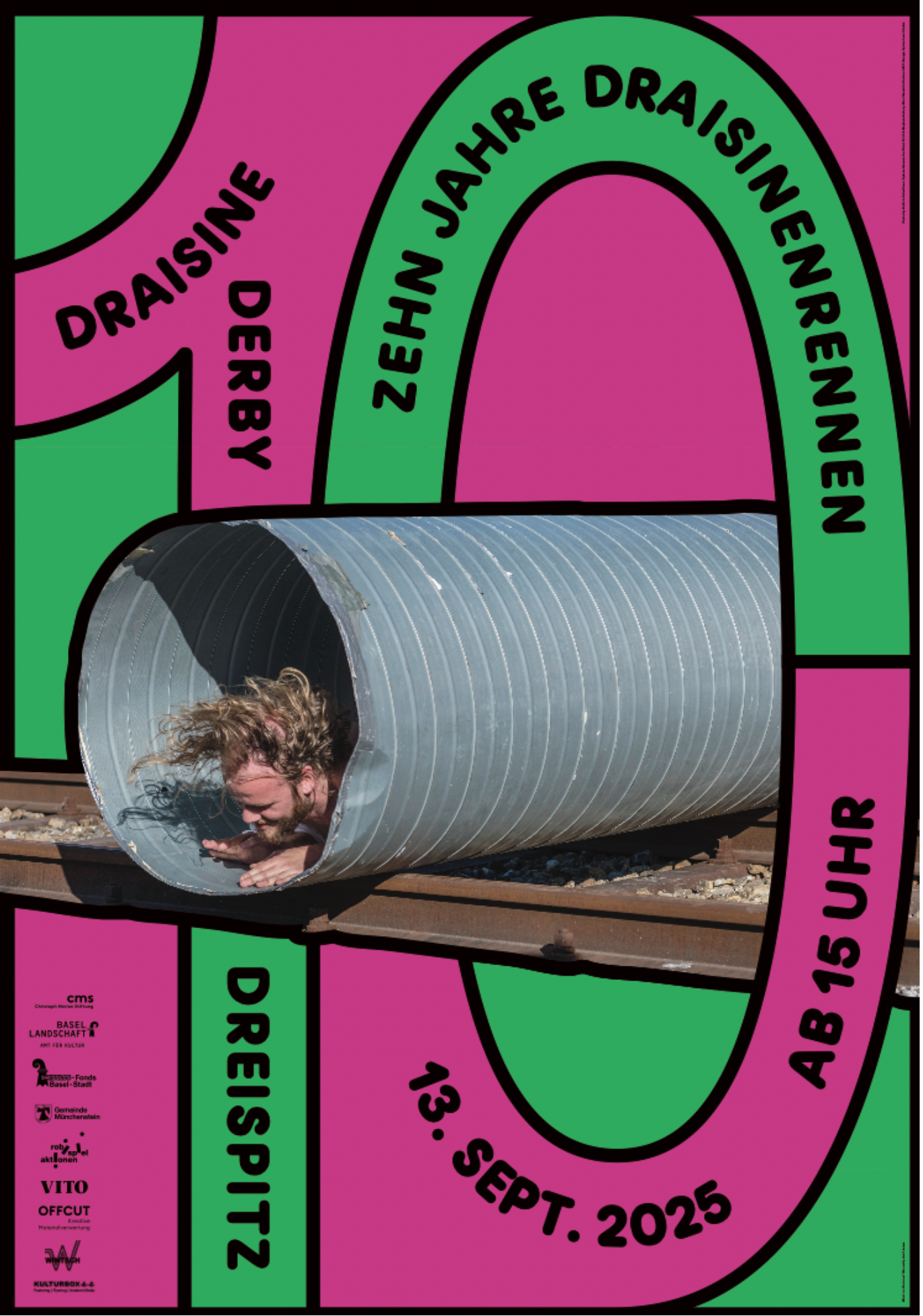 Das Draisinenrennen bewegt sich seit 2016 auf und zwischen den Gleisen des Basler Dreispitzareals – zwischen Kunst und Sport, Minimalismus und Spektakel, Kreativität und Technologie. Es ermöglicht Begegnungen, die zu selten stattfinden, und sorgt damit für Furore: Rund 10‘000 Menschen hat es schon auf den Dreispitz geführt, zahlreiche ansässige Unternehmungen involviert, genauso Gruppierungen von ausserhalb. Das Draisine Derby beweist jedes Jahr aufs Neue: Sportliche Anlässe müssen nicht leistungsorientiert, kommerziell oder unästhetisch sein, und Kunstevents weder nebulös noch blasiert oder humorlos. Seit 2023 sind Start und Ziel identisch. Die Gefährte müssen auf der Strecke also wenden. Das verspricht noch mehr Spektakel. Es werden 4 Pokale inklusive Preisgeld vergeben: Schönstes Scheitern, Publikumsliebling, Schnellste Draisine und Grand Prix der Jury.