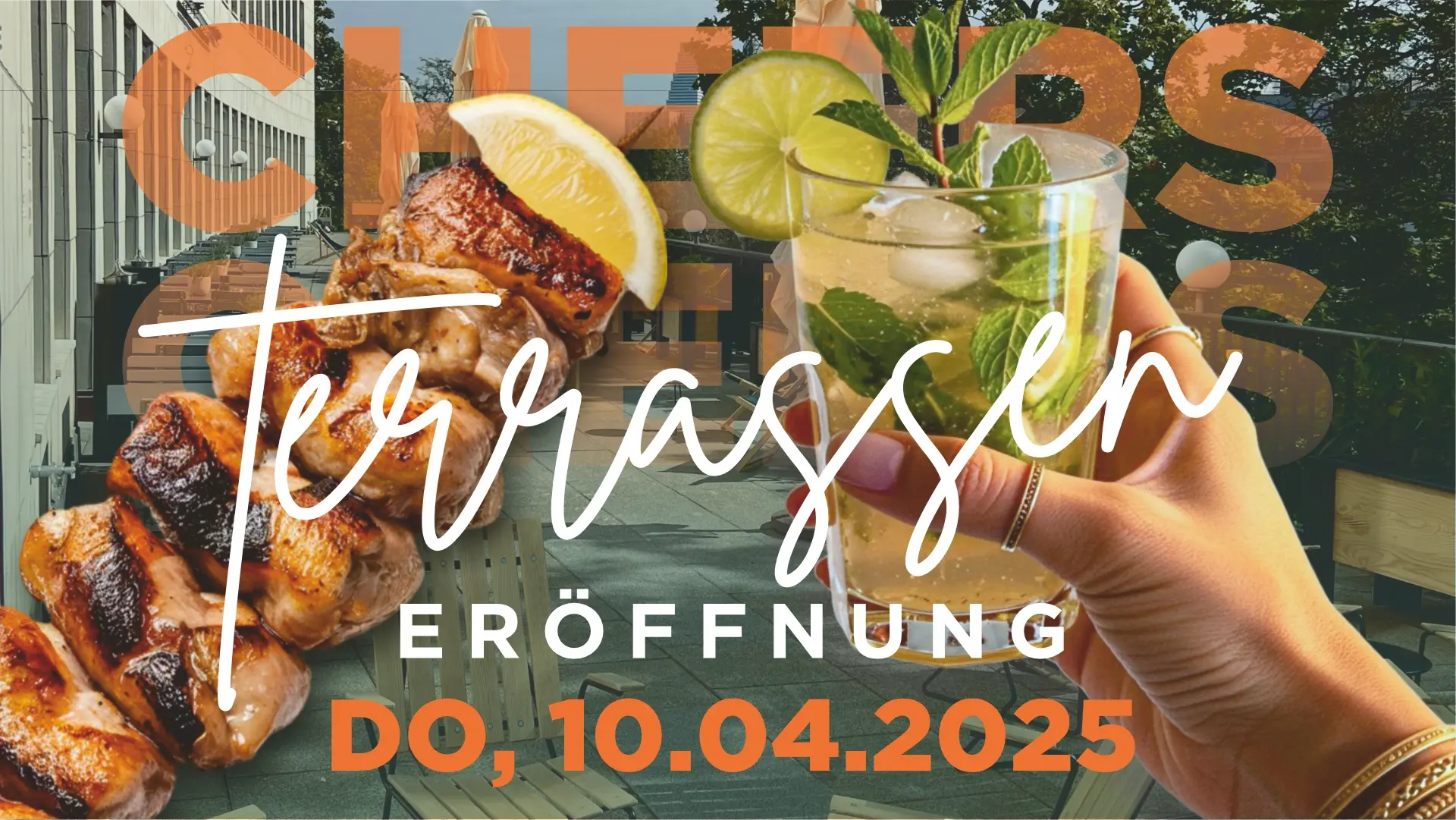 Am Donnerstag, 10. April 2025 heissen wir den Frühling offiziell willkommen und eröffnen unsere wunderschöne Terrasse! Ab 17 Uhr laden wir euch ein, den Feierabend mit uns unter freiem Himmel zu geniessen – mit erfrischenden Drinks, feinen Häppchen und guter Musik.