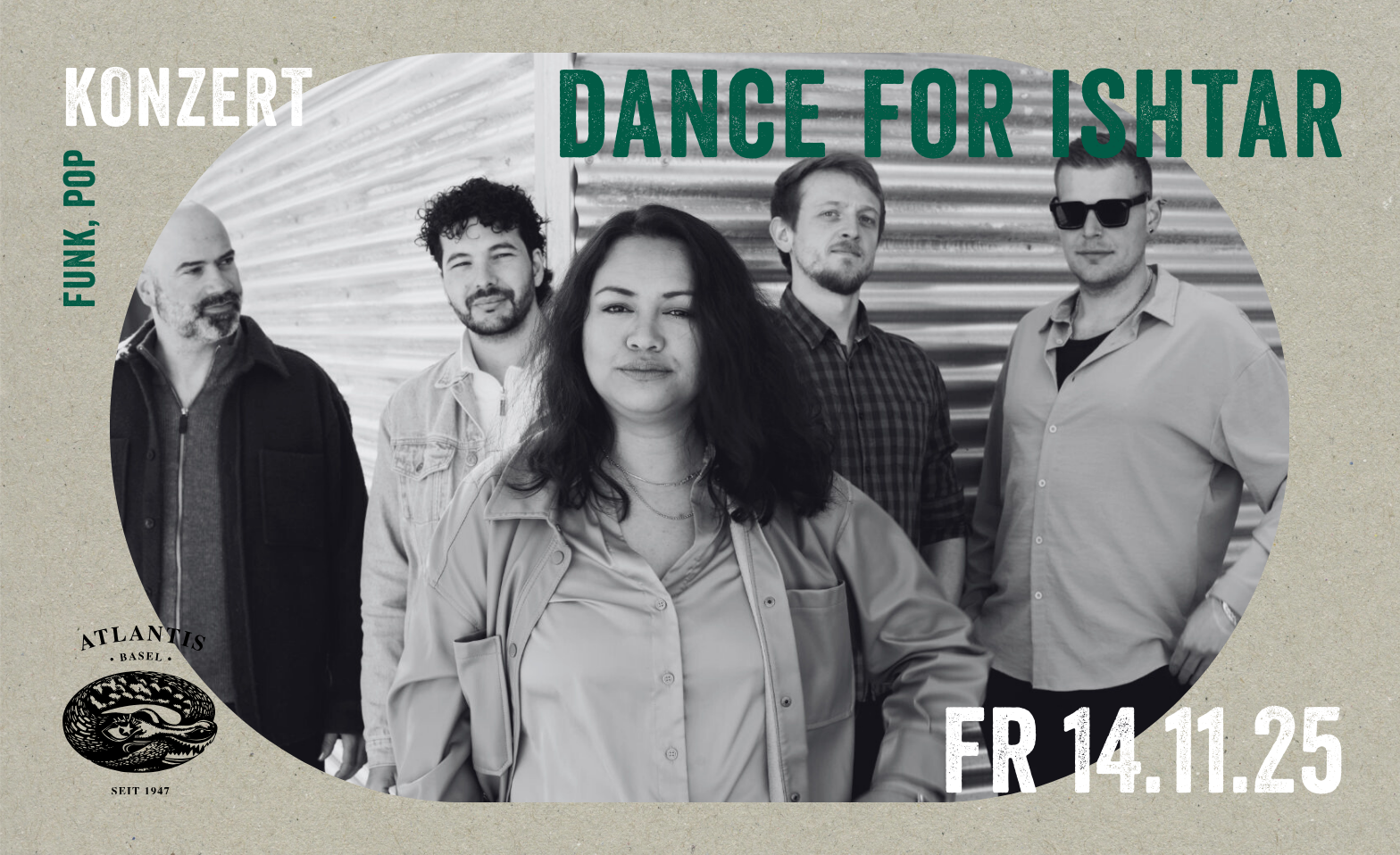 So mischt die Basler Band Dance for Ishtar die Musikszene auf mit ihrer erfrischend neu klingenden Mischung von funkigen Disco-Klängen, psychedelisch-sphärischen Sounds, virtuosen Gitarrensolos und ohrwurmigen Popmelodien. Wenn Dance for Ishtar spielt, bleibt kein Tanzbein auf dem andern.