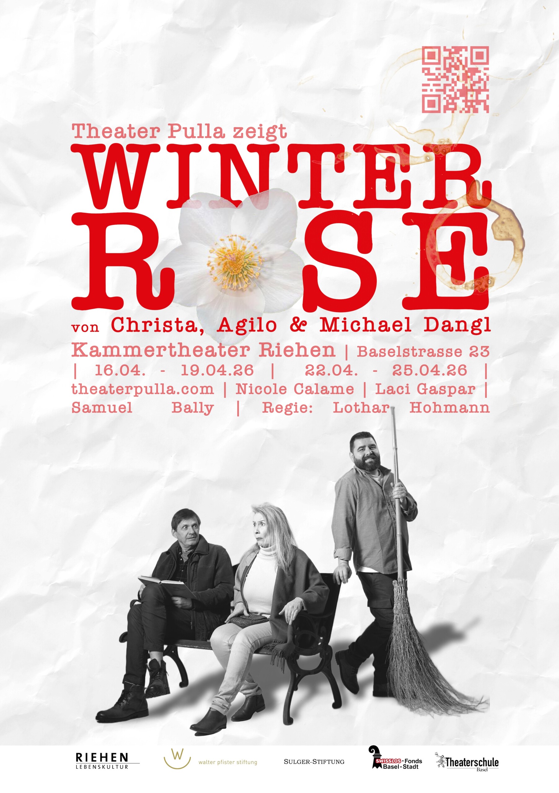 Unter der Regie von Lothar Hohmann spielen Nicole Calame, Laci Gaspar und Samuel Bally das Stück «Winterrose» im Kammertheater Riehen.