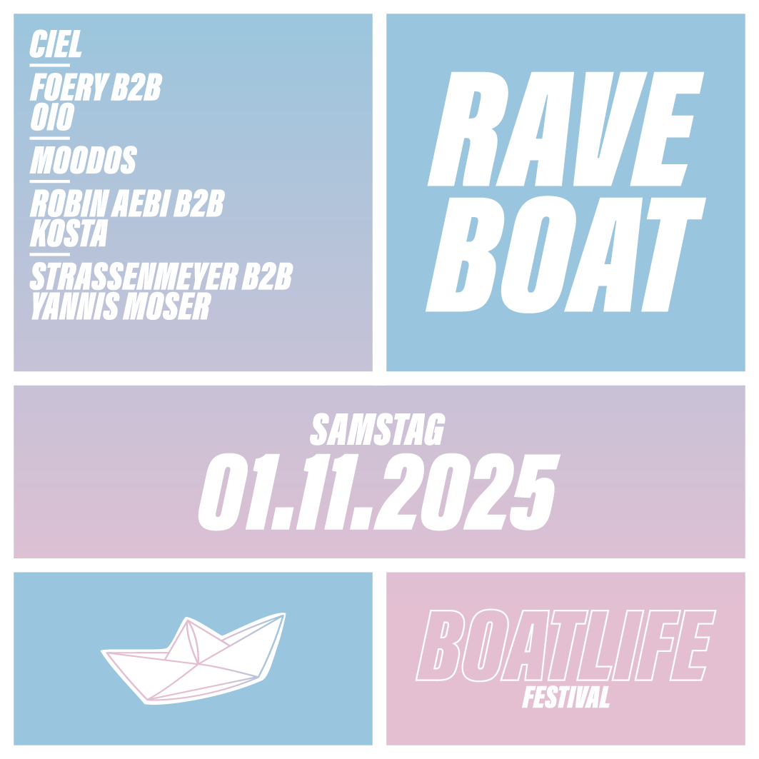 Am Samstag, 1. November feiern wir am Boatlife Festival auf dem Rave Boat zu den elektronischen Beats einer Vielzahl regionaler Künstler. FOERY, OIO, MOODOS, ROBIN AEBI, KOSTA, STRASSENMEYER & YANNIS MOSER versetzen das grosse Schiff auf dem Rhein am letzten Festival-Wochenende noch einmal richtig in Ekstase.