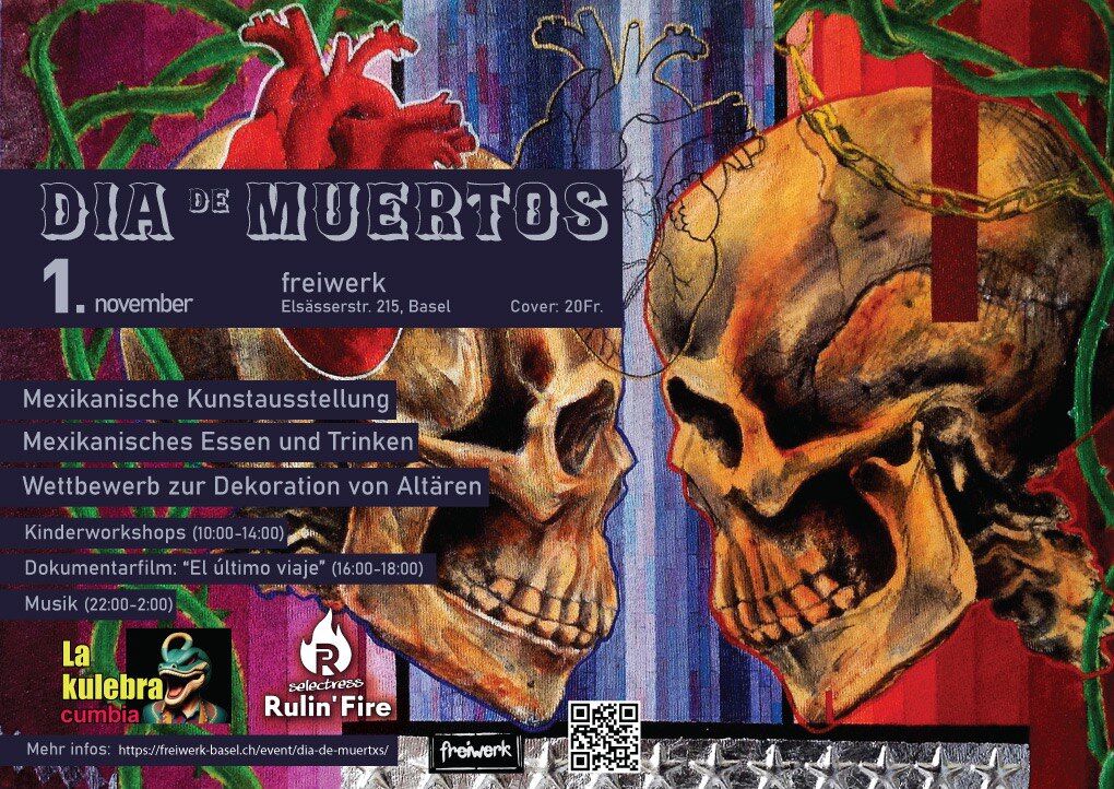 Am Samstag, 1. November, verwandelt sich das Freiwerk Basel in ein lebendiges Fest der Erinnerung und Lebensfreude. Inspiriert von der mexikanischen Tradition des Día de los Muertos lädt das Freiwerk und das Künstlerkollektiv La Mano zu einem Tag voller Farbe, Musik, Kunst und Begegnung ein.