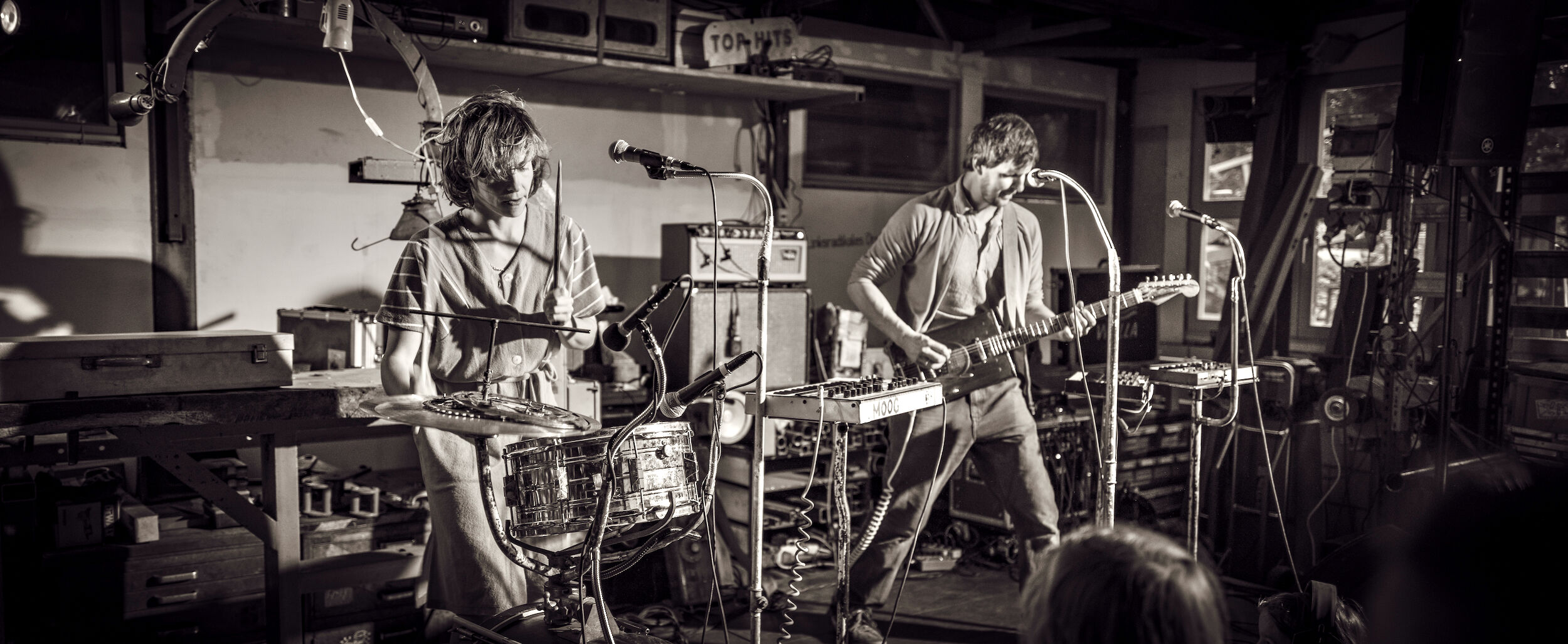 Zwei innovative Basler Pop-Duos mit Sounds von edgy Trashpop bis tiefgründig-emotionalem Electro-Pop live im MUKS-Hof.