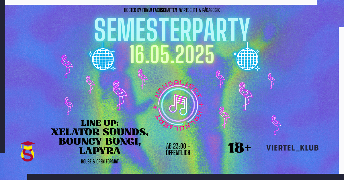 Bald ist es soweit! Am Freitag, 16.05.2025 findet eine weitere Edition von „Mandaliert & Kalkuliert“ statt, deine Lieblingssemesterparty der Fachschaften Wirtschaft und Pädagogik FHNW. Sichere dir jetzt dein Early-Bird-Ticket für nur 10.- CHF unter (Link wird eingefügt sobald ich dein Einverständnis habe) !
