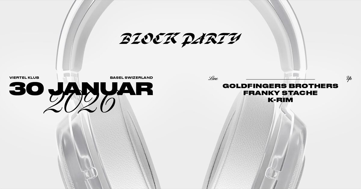 Die Goldfinger Brothers laden am letzten Weekend des Monats zum gossen Block Party Auftakt 2026 in den Viertel Klub ein. Abgedeckt wird wie üblich das gesamte Spektrum an Urban Sounds, von Hip-Hop über RnB bis hin zu Trap. Auch in Sachen Line-Up lassen die Gastgeber nichts anbrennen und schicken ein genauso bewährtes wie spektakuläres DJ-Team ins Rennen. Der langjährige Zürcher Buddy K-Rim teilt sich die Turntables mit der Block Party Stammtruppe aus Franky Stache und natürlich den Goldfinger Brothers selbst. Ganz grosses Kino ist garantiert.