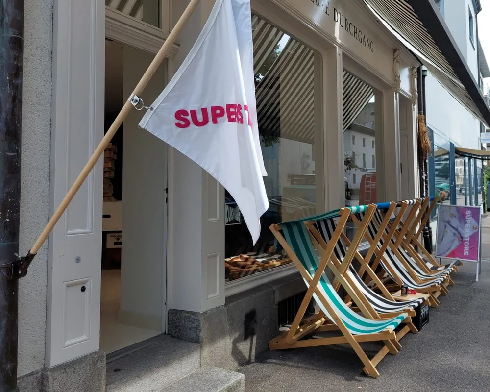 Noch bis am 17. August betreibt die Galerie Durchgang den SUPERSTORE. Die Ausstellung ist da zum Durchspazieren und gleichzeitig ein Shoppingangebot mit Kunst zum Tragen, Bestaunen und Benützen.