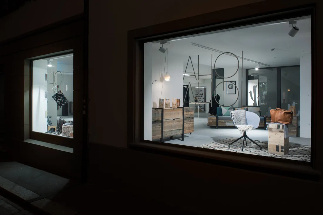In addition to the boutique and the online shop, AHOI AHOI has a project space, a room for designers and artists, in which they can present their works. The exhibitions change monthly and are each opened with an event.