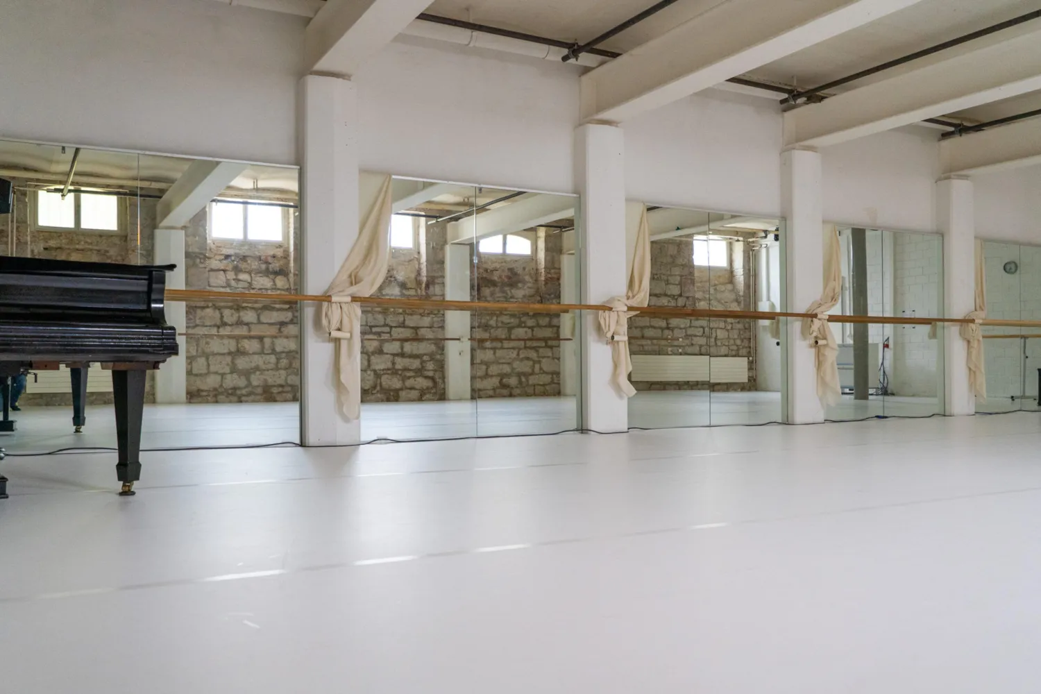 Schlichtes Tanzstudio für Konzerte, Theater und Tanzaufführungen.