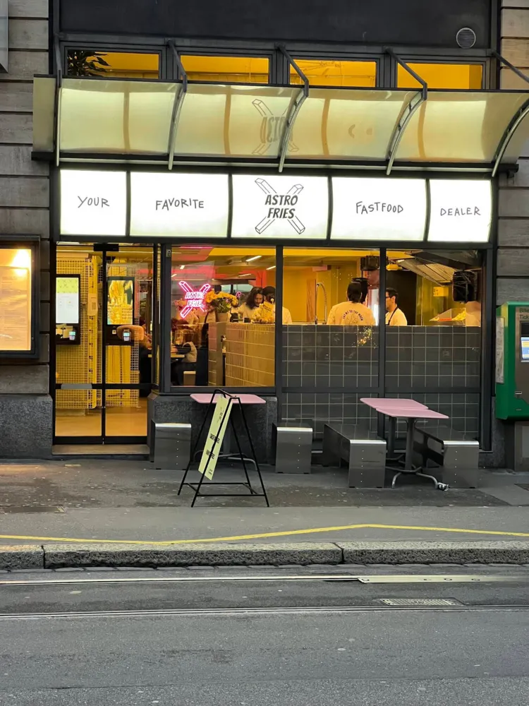 Astro Fries wird in Basel als Anbieter der besten Pommes der Stadt gefeiert. Die Pommes werden von Hand geschnitten und doppelt frittiert, was ihnen eine besondere Knusprigkeit verleiht. Innovative Toppings sorgen für ein kreatives Geschmackserlebnis. Neben den Pommes sind die erstklassigen Burger eine tolle Ergänzung, die fast schon als Beilage durchgehen. Ein Must-Visit für Pommes- und Burgerliebhaber in Basel.