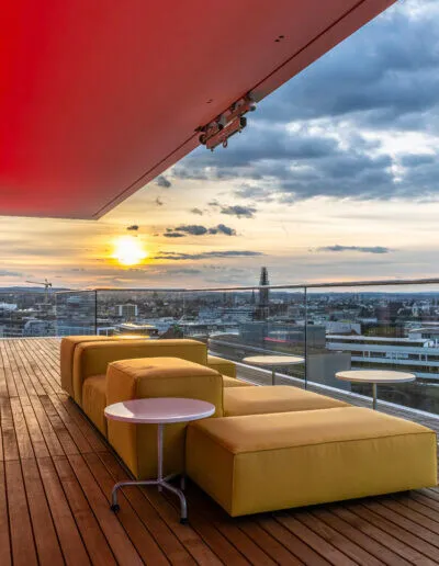 Das B1 Rooftop Bistro begeistert mit einem atemberaubenden 360° Panorama und verlockenden Köstlichkeiten – der perfekte Ort für Genussmomente über den Dächern der Stadt!