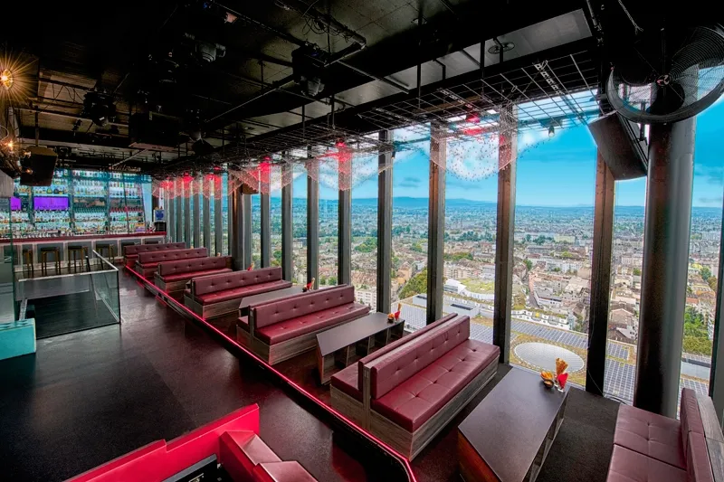 Hoch über den Dächern von Basel, dem Himmel nahe, mit herrlicher Aussicht über das quirlige Stadtleben und die malerischen Landschaften befindet sich die Bar Rouge in 105 Metern Höhe!