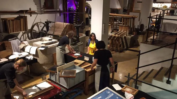 Auf lebendige Weise treffen in der Basler Papiermühle funktionierende Werkstätten und technikgeschichtliche Ausstellungen aufeinander. Das Schweizerische Museum für Papier, Schrift und Druck führt in einem Rundgang über vier Etagen durch die Geschichte von Papier, Schrift und Druck und bietet den Besuchenden ein Erlebnis für alle Sinne: Ein eigenes Blatt Papier schöpfen, mit Gänsekiel oder Schreibmaschine schreiben, einen Text in Bleilettern setzen und drucken sowie mit Farben in der Marmorierwerkstatt experimentieren gehört bei jedem Museumsbesuch dazu.