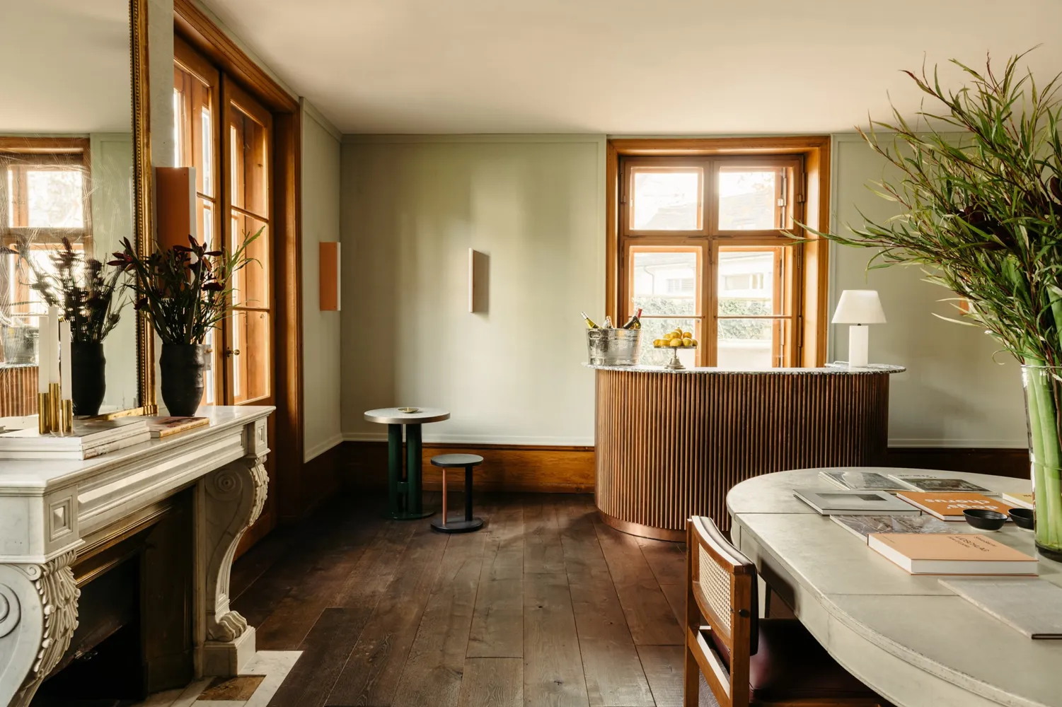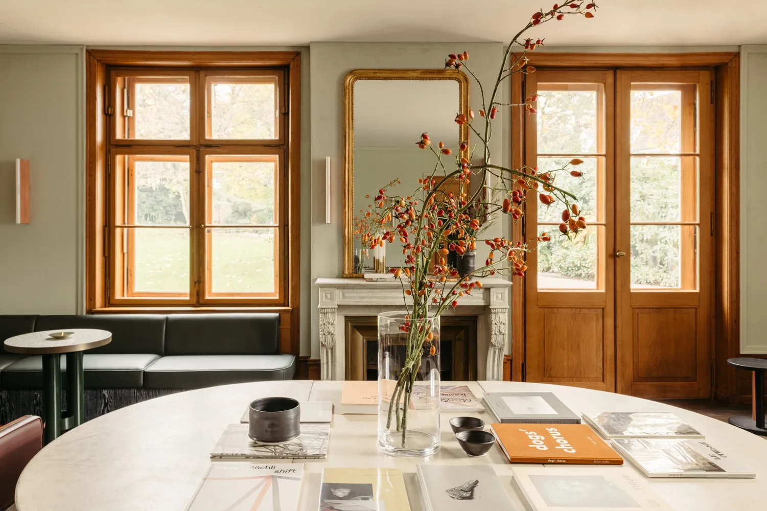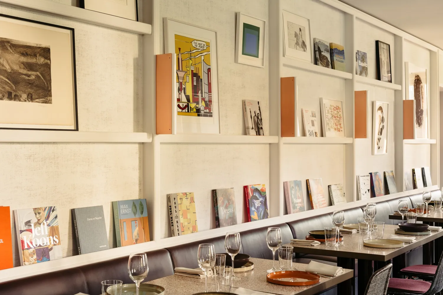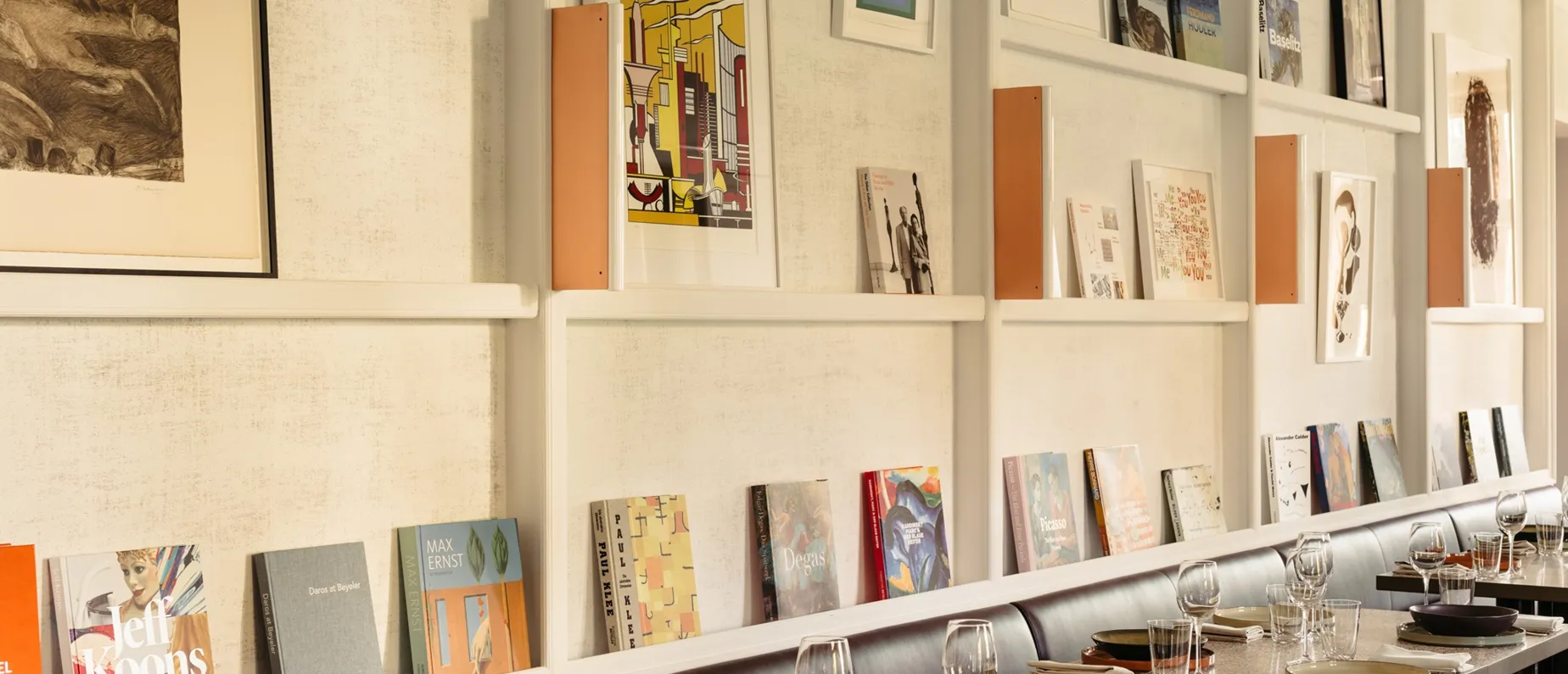 Zentrales Element ist eine variable Bücher- und Editionswand, die der Fondation Beyeler als Schaufenster für Ausstellungskataloge, Literatur und Künstlereditionen, begleitend zum Ausstellungsprogramm des Museums, dient.