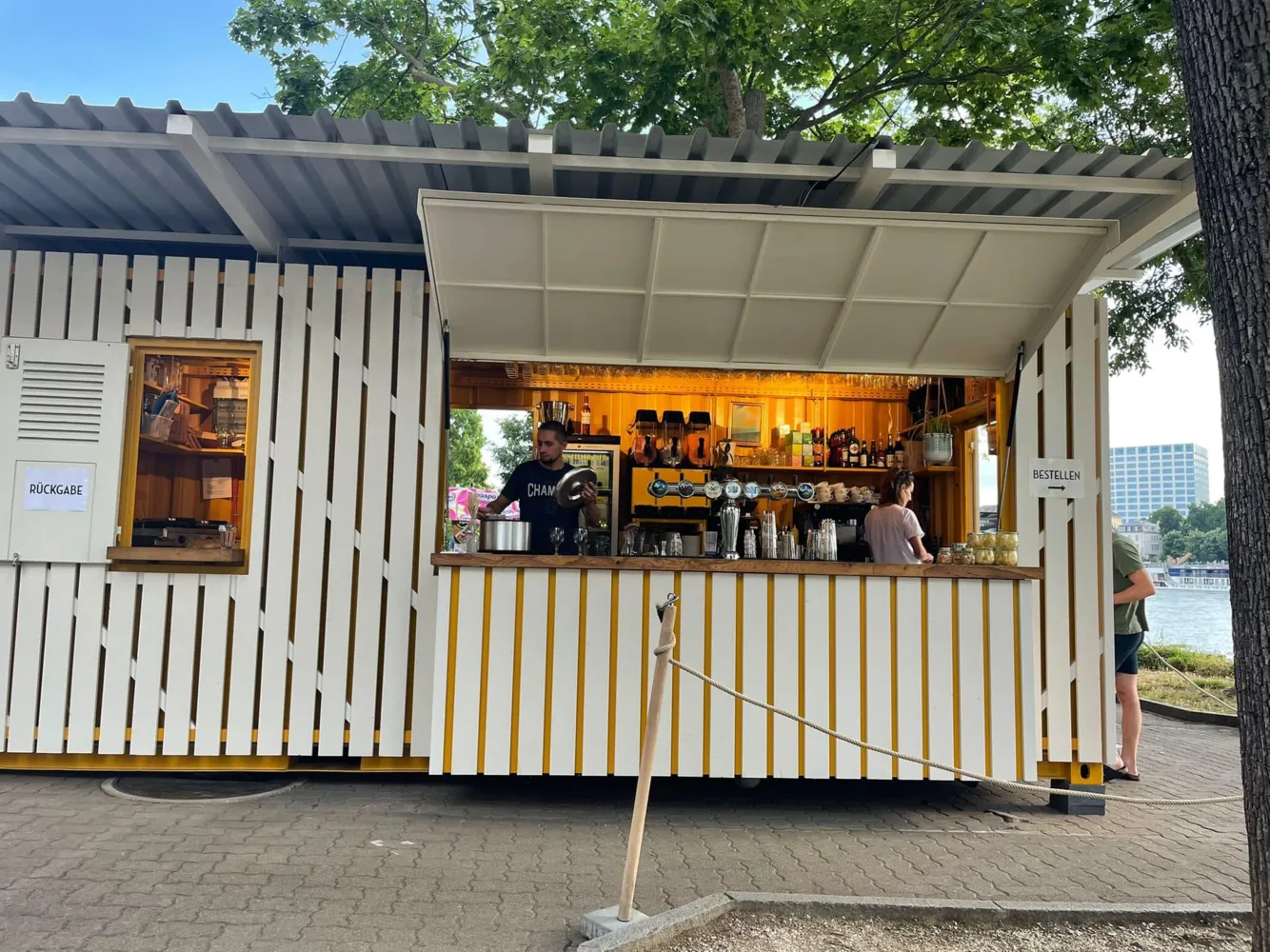 Die wohl romantischste aller Basler Buvetten wird seit dem Sommer 2022 vom Smuk-Team bespielt. Das Bier und die Fruchtschorlen aus der Region, der Kaffee von Freunden aus Kolumbien, den Aperol Spritz zur Abwechslung mal als Granita, ein Tischtuch wie bei Nonna und Trockenblumen, die man bereits aus dem Smuk kennt: Die frisch Sommeroase bei der Dreirosenbrücke erscheint im Beach-Style und lädt zum Wiederkommen ein.
