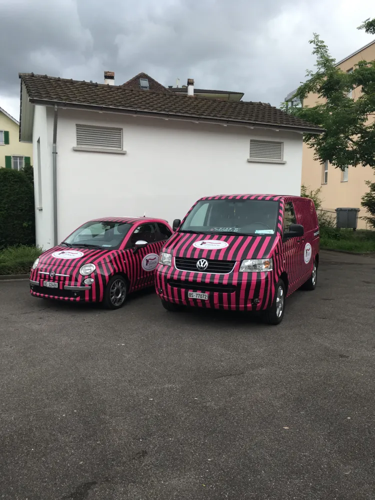 Mit unserem auffälligen Signet, welches rosa-weiss gestreift ist, beliefern wir unsere Kunden mit unseren gestreiften Autos auch durch das ganze Jahr mit den «Mässpäggli», welche immer wieder für tolle Geschenkideen dienen.