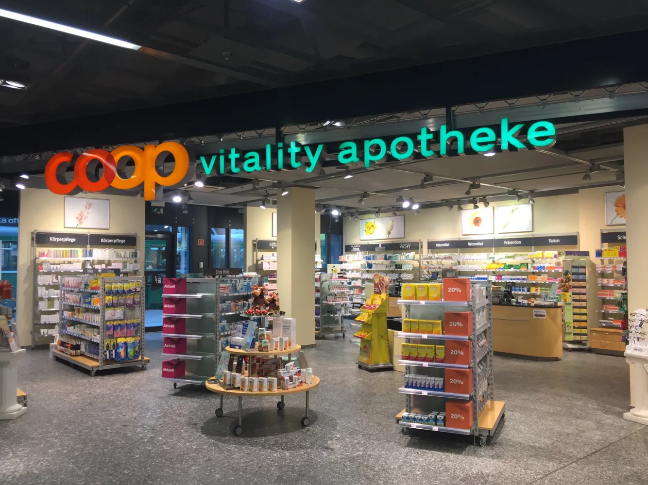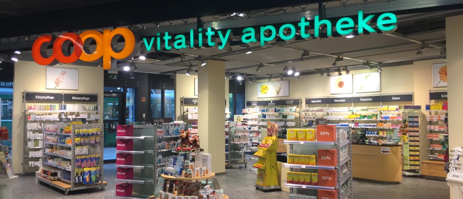 Die Coop Vitality Apotheken bieten ein breites Sortiment an rezeptpflichtigen und rezeptfreien Arzneimitteln. Ergänzt wird dies durch eine breite Auswahl an Produkten für die Gesundheitspflege und die Dermokosmetik sowie aus dem Naturheilmittelbereich. Zudem führt Coop Vitality preisgünstige Eigenmarken im Sortiment.