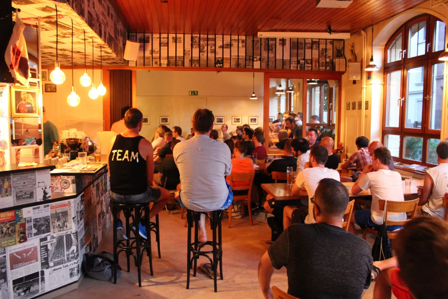 Wir sind eine Bar, die mit grosser Getränkeauswahl und unterschiedlichen Veranstaltungen wie unseren Quizabenden auch für Leute, die sich nicht gross für Fussball interessieren, zu einem gemütlichen Treffpunkt wird.