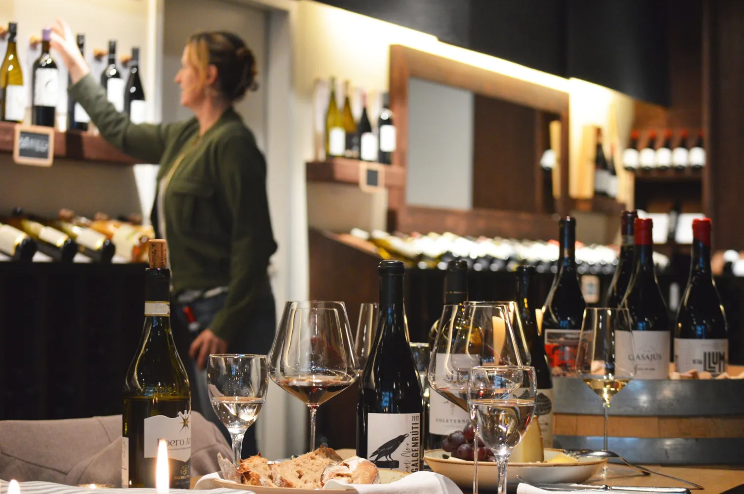 Im gemütlichen Ambiente des Ladengeschäftes findest Du ausgesuchte Weine aus unserer Siebe Dupf Kellerei, sowie nationale und internationale Tropfen.
