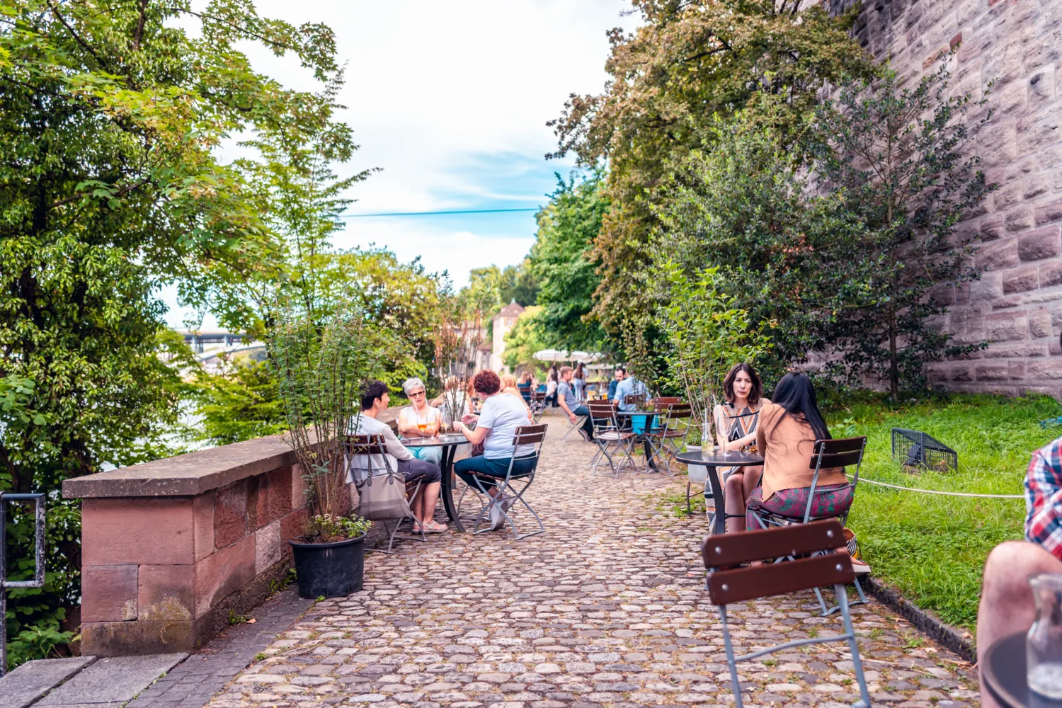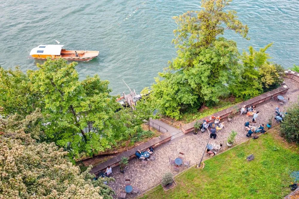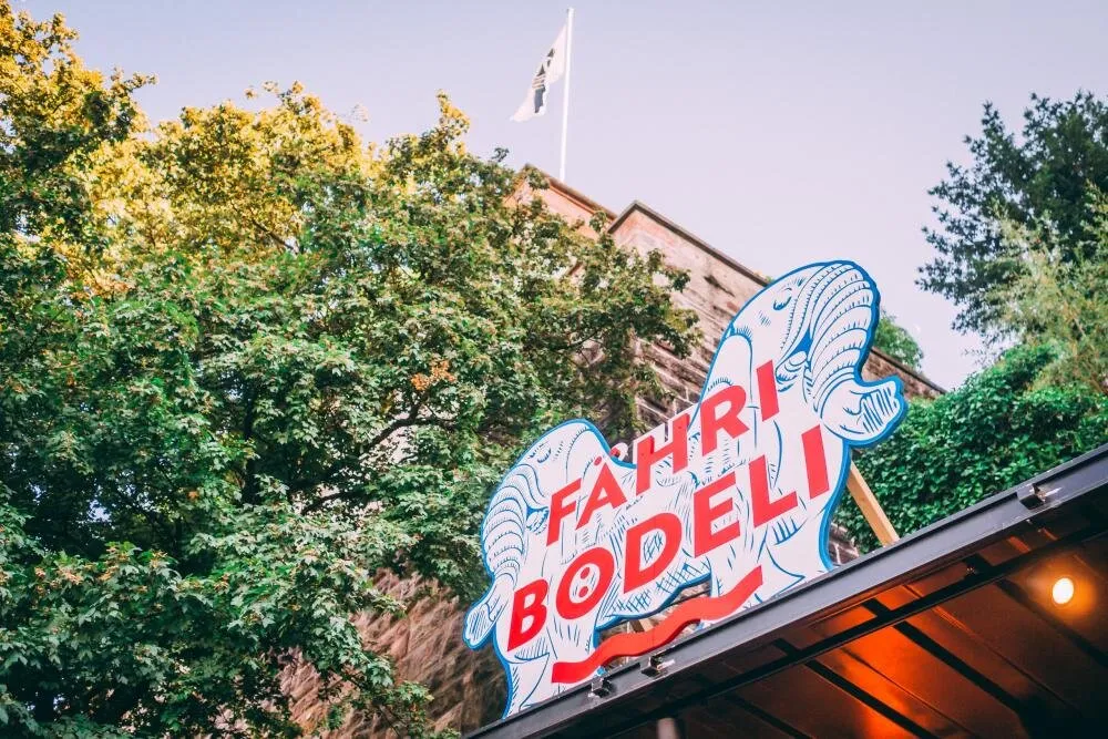 Auf dem Fähribödeli mit der Sonne im Gesicht und einem Drink in der Hand geniesst du im Sommer wunderschöne Abende unter der Pfalz!