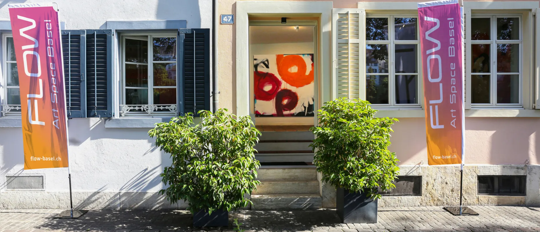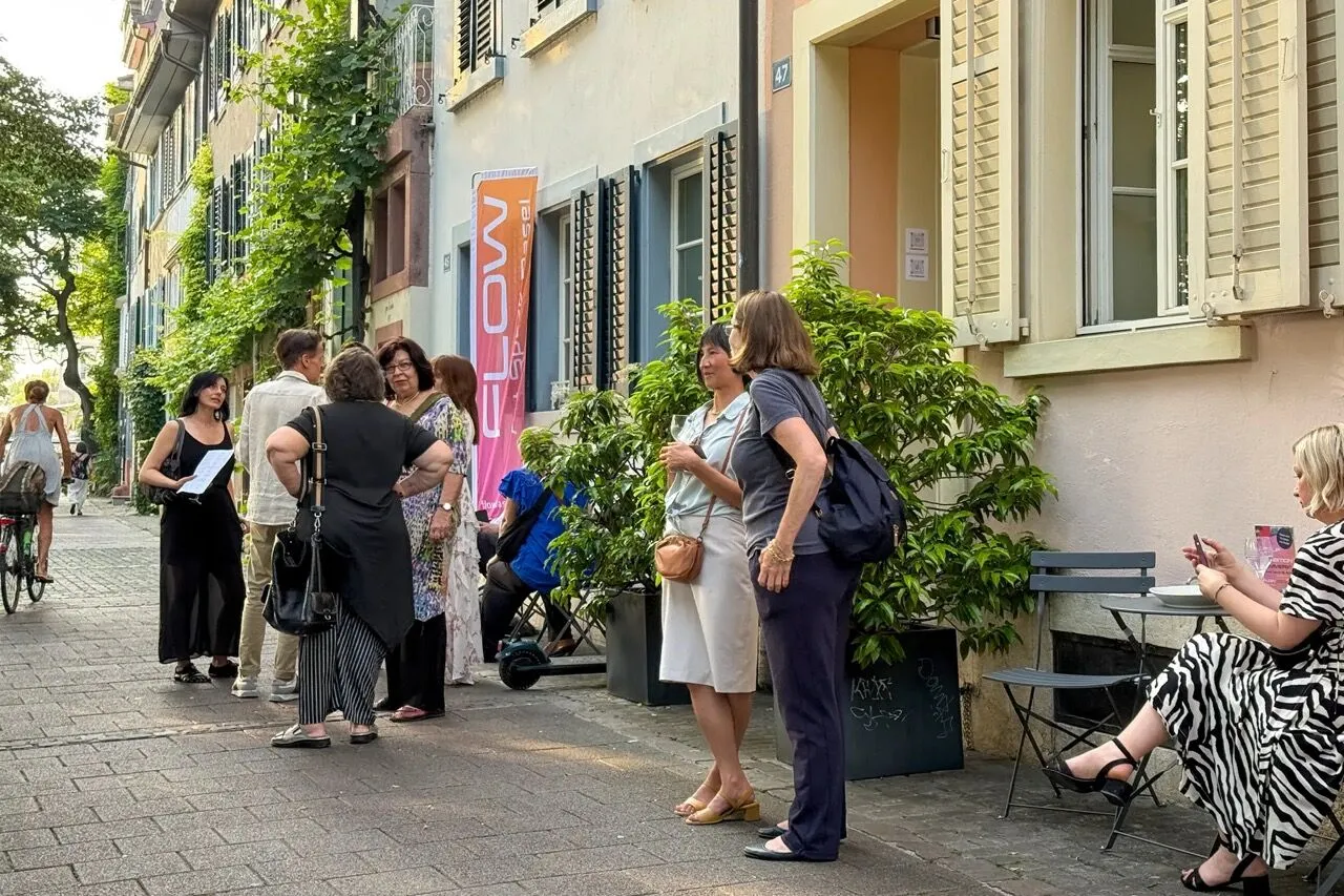 FLOW Art Space Basel zeigt wechselnde, sorgfältig kuratierte Einzel- und Gruppenausstellungen zeitgenössischer Kunst. Direkt an der Kleinbasler Rheinpromenade – zwischen Mittlerer und Wettsteinbrücke – gelegen, lädt der lichtdurchflutete Ausstellungsraum mit dem grandiosen Blick auf den Rhein zum Entdecken, Verweilen und Inspirieren ein.