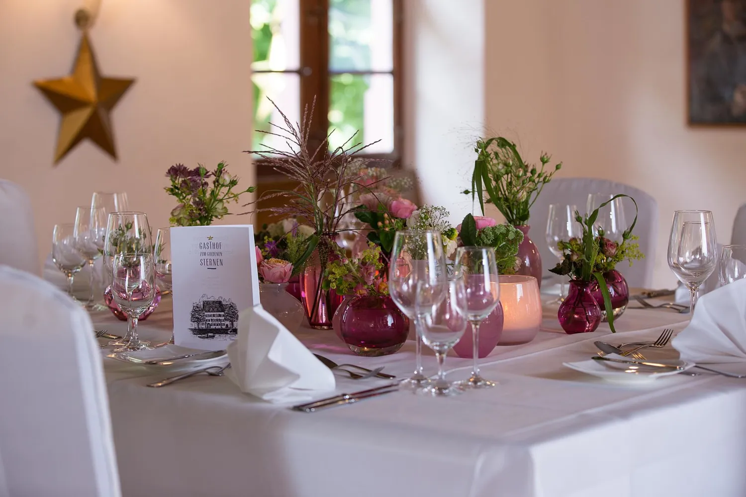 Schon beim Betreten des Gasthofs zum Goldenen Sternen spüren Sie, bei uns sind Sie als Gast aufs Herzlichste willkommen. Genussfreude und ein interessanter Mix aus mediterranen und traditionellen Gerichten ist das Credo unseres Hauses. Unabhängig davon, ob Sie in der gediegenen Atmosphäre der historischen Räumlichkeiten oder - in den warmen Monaten des Jahres - auf einer der beiden herrlichen Terrassen speisen, Ihr Besuch bei uns wird zum Erlebnis.
