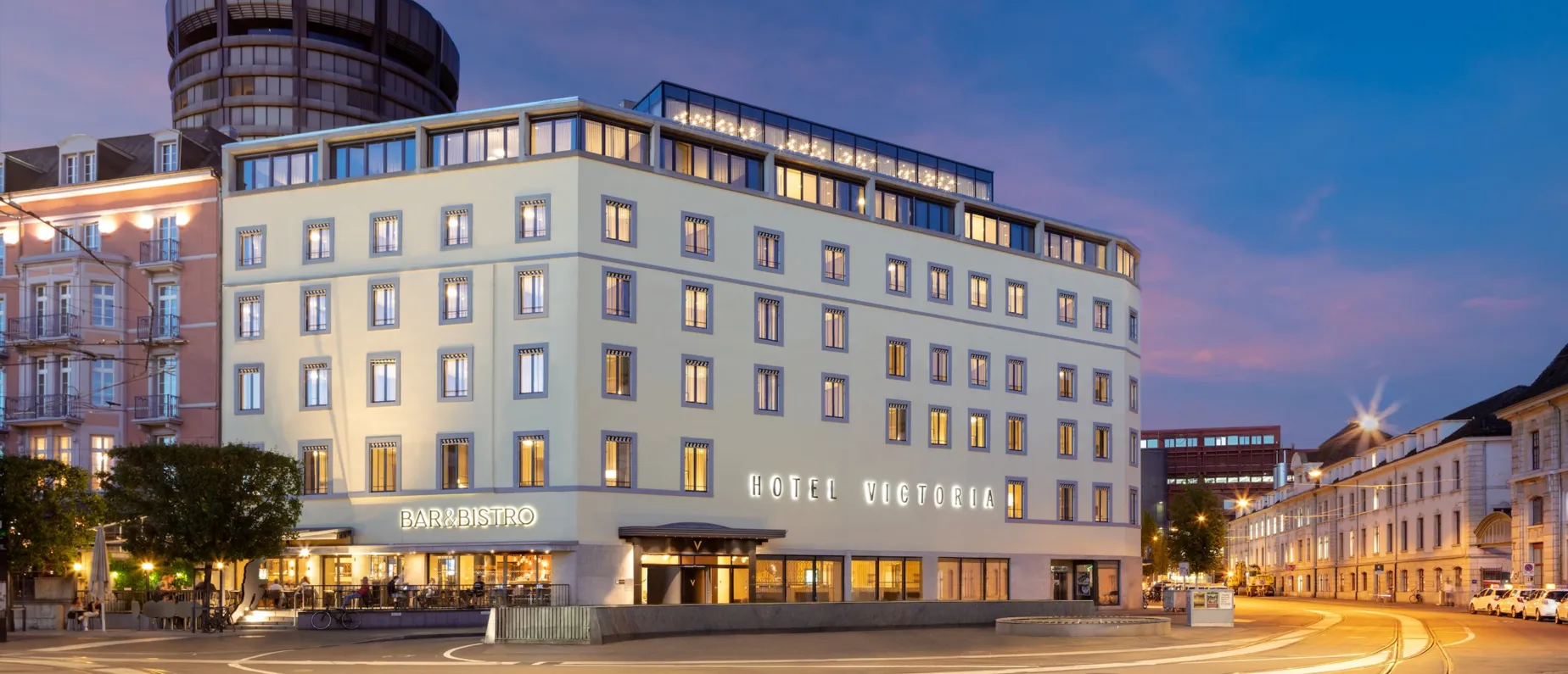 Das Hotel Victoria liegt in der Nähe vom Bahnhof SBB und ist ein stilvolles Refugium, das das Schweizer Flair und urbane Kultur der Basler City widerspiegelt.