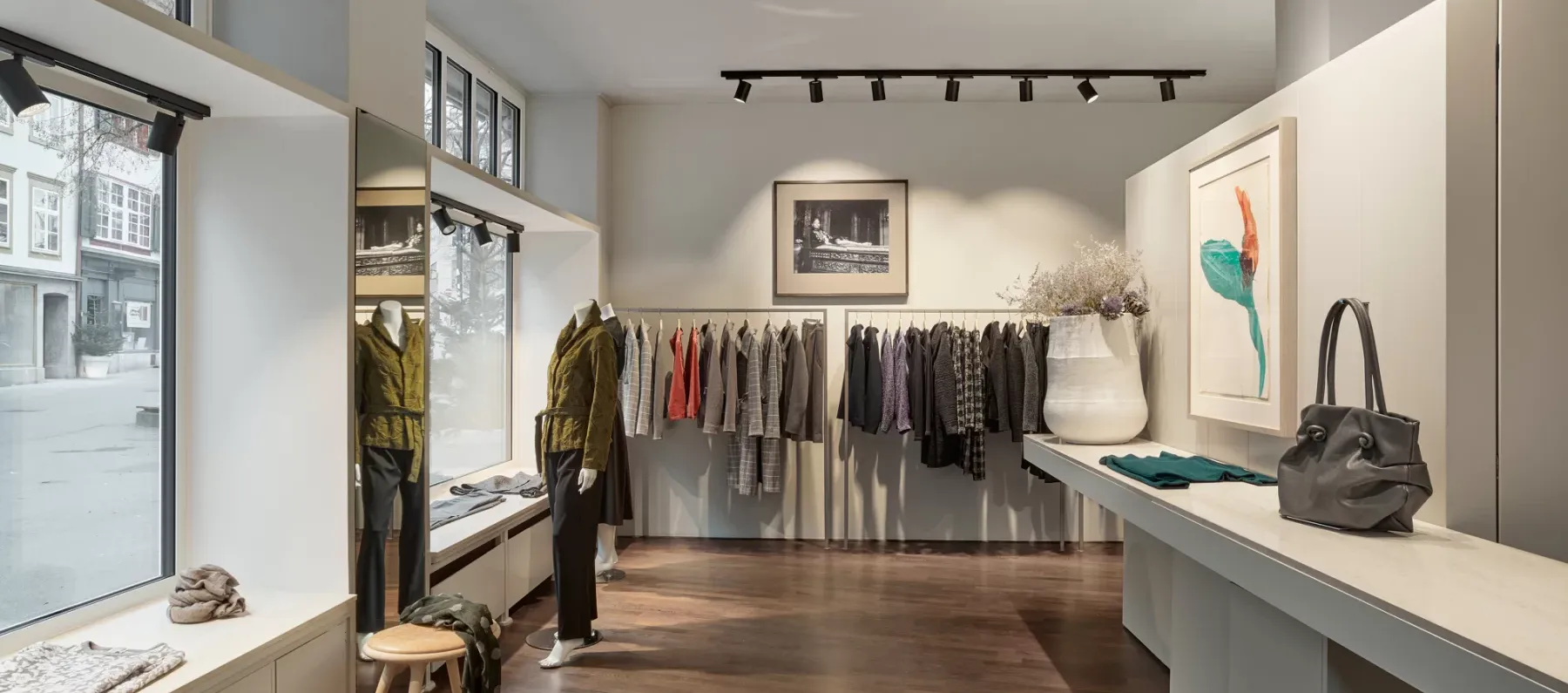 Die Mode ist zeitlos und nachhaltig, denn jedes Stück entsteht direkt über dem Laden in sorgfältiger Handarbeit – spürbar in Qualität, Passform und der Freude beim Tragen.