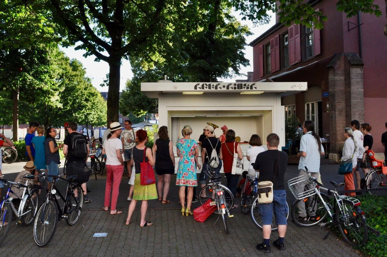 Das ehemalige Kioskhäuschen bietet Gelegenheit für Lesungen, Konzerte, Ausstellungen und vieles mehr. Der Keck Kiosk verändert laufend seine Erscheinung.