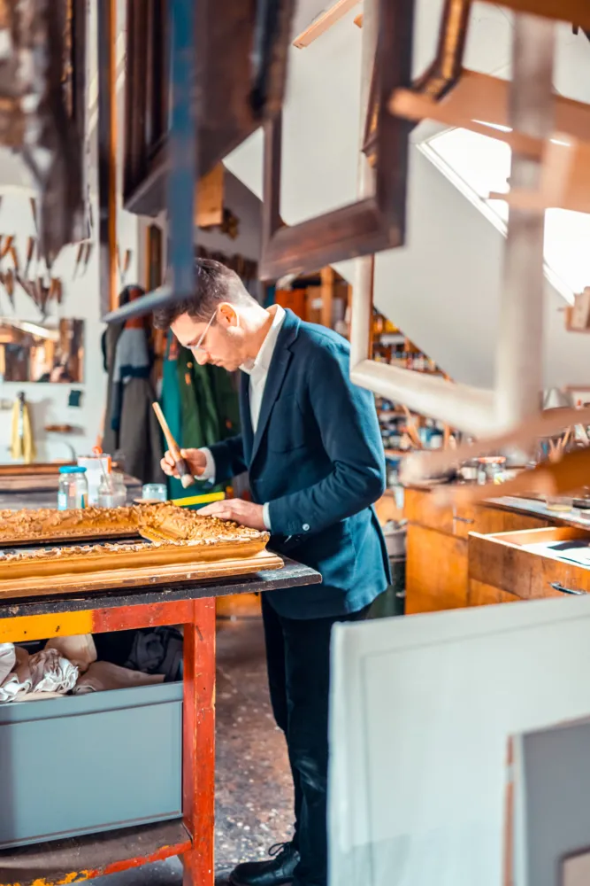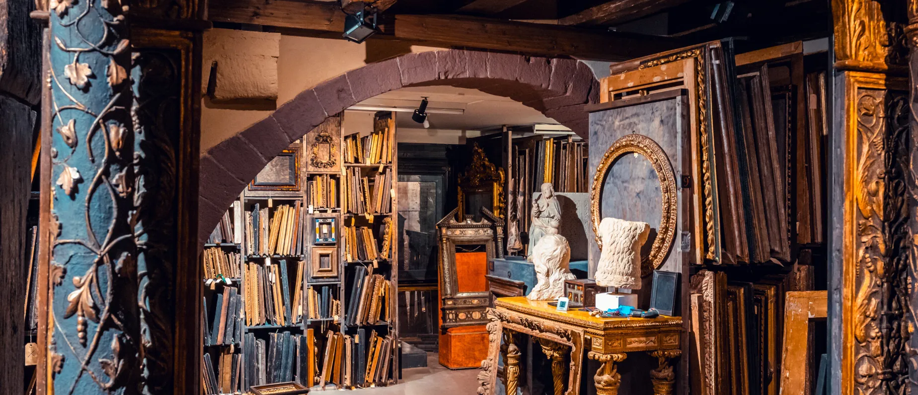 Bereits in vierter Generation arbeitet KNOELL RAHMEN gezielt daran, Kunstwerke aus aller Welt zu rahmen. Über die Jahrzehnte ist ein umfassendes Archiv historischer Bilderrahmen gewachsen, welches Objekte und Stile aus über 5 Jahrhunderten umfasst. Sei es der gotische Wasserschlagrahmen oder der italienische Tabernakel, Kassettenrahmen, das Barockprofil und Sansovino, der holländische Flammleistenrahmen, Salvator Rosa, Louis XIV, oder der klassizistische Goldrahmen: In unseren Archivräumen findet sich eine viele tausende Exponate umfassende Sammlung antiker Bilderrahmen, die in ihrer Qualität und Dichte weltweit einmalig ist.