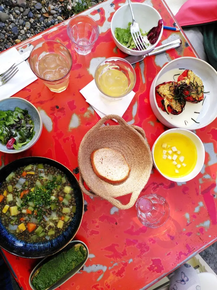Gekocht wird vegetarisch–vegan mit ausschliesslich lokalen, nachhaltigen Produkten aus der Region. Dazu gibt es regionale Naturweine, Säfte, saisonales Kombucha und mehr ...